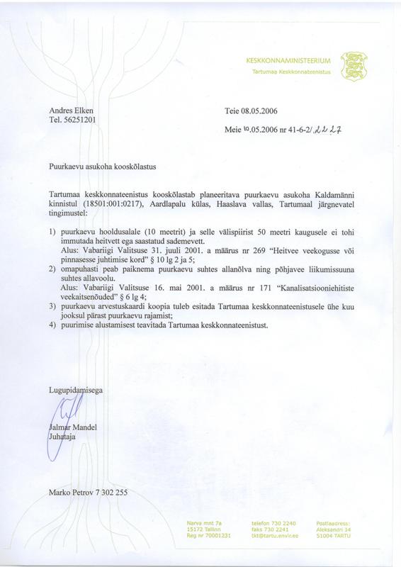 Puurkaevu projekt, puurimine ja süsteemide ehitus. Neljale majale liitumised kokku 4 kuupi tunnis.