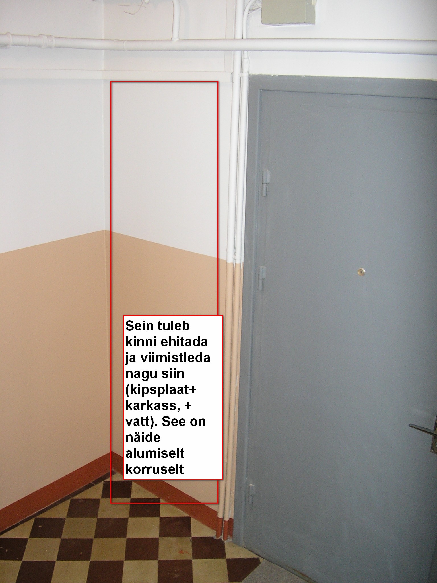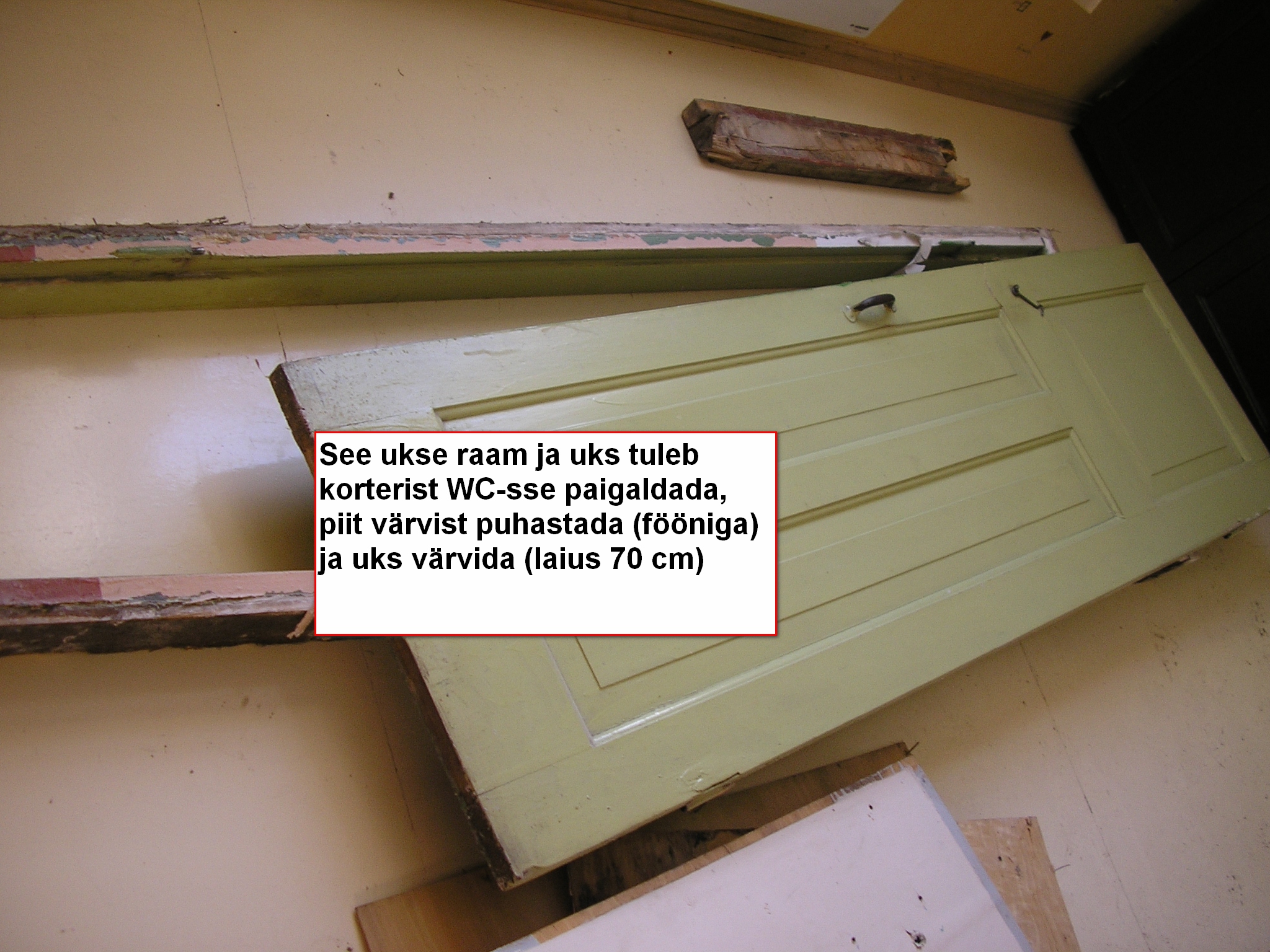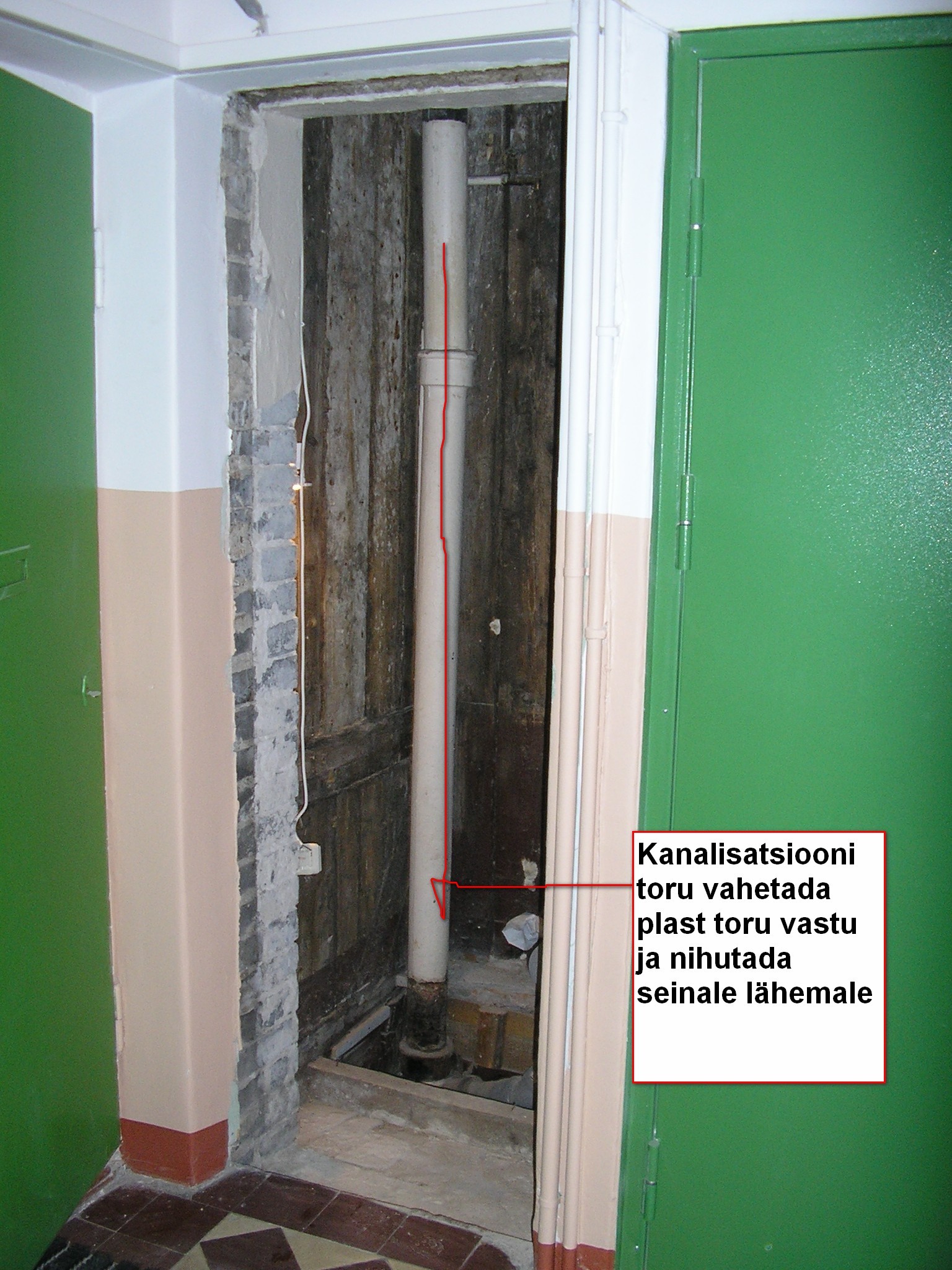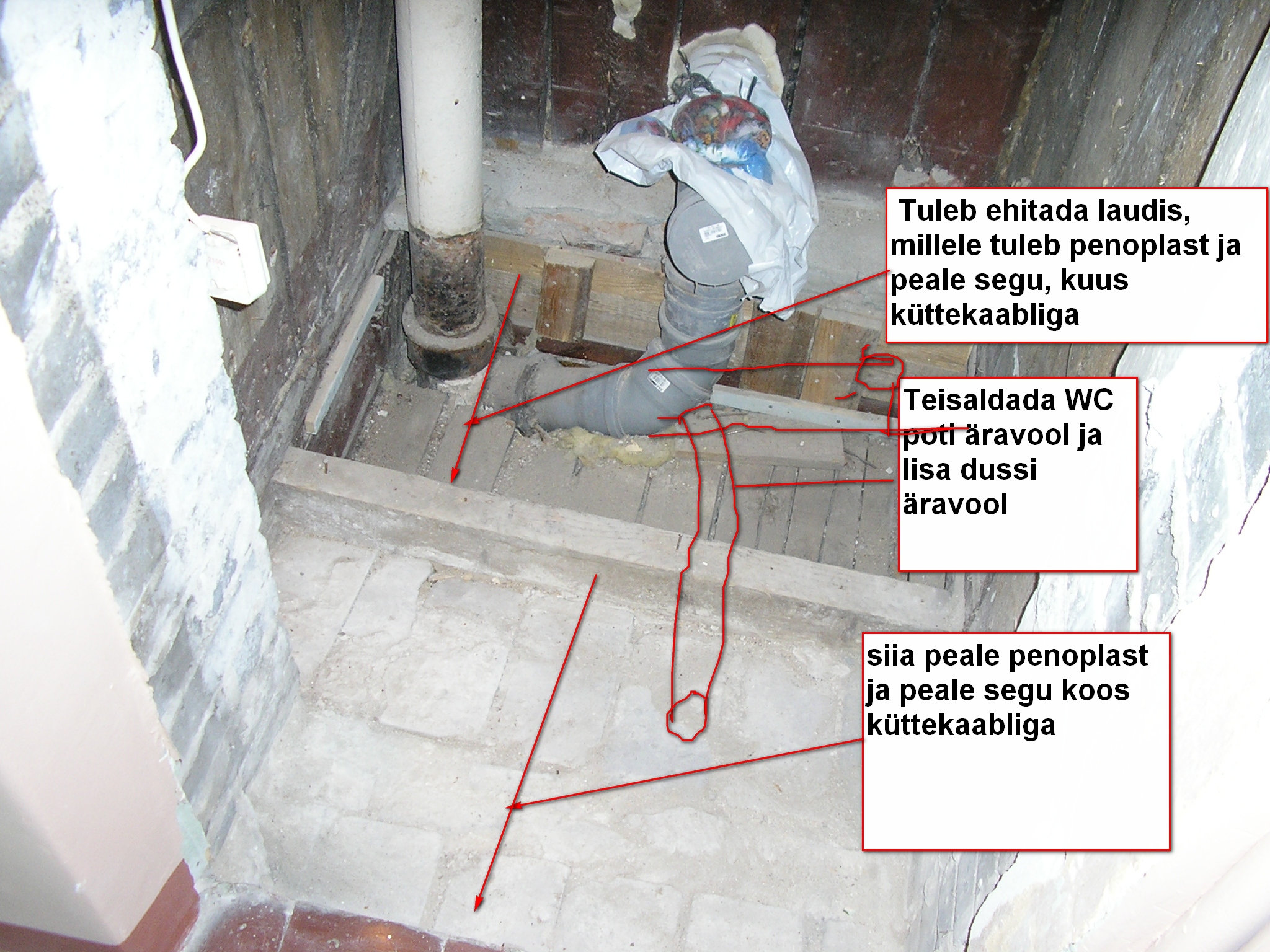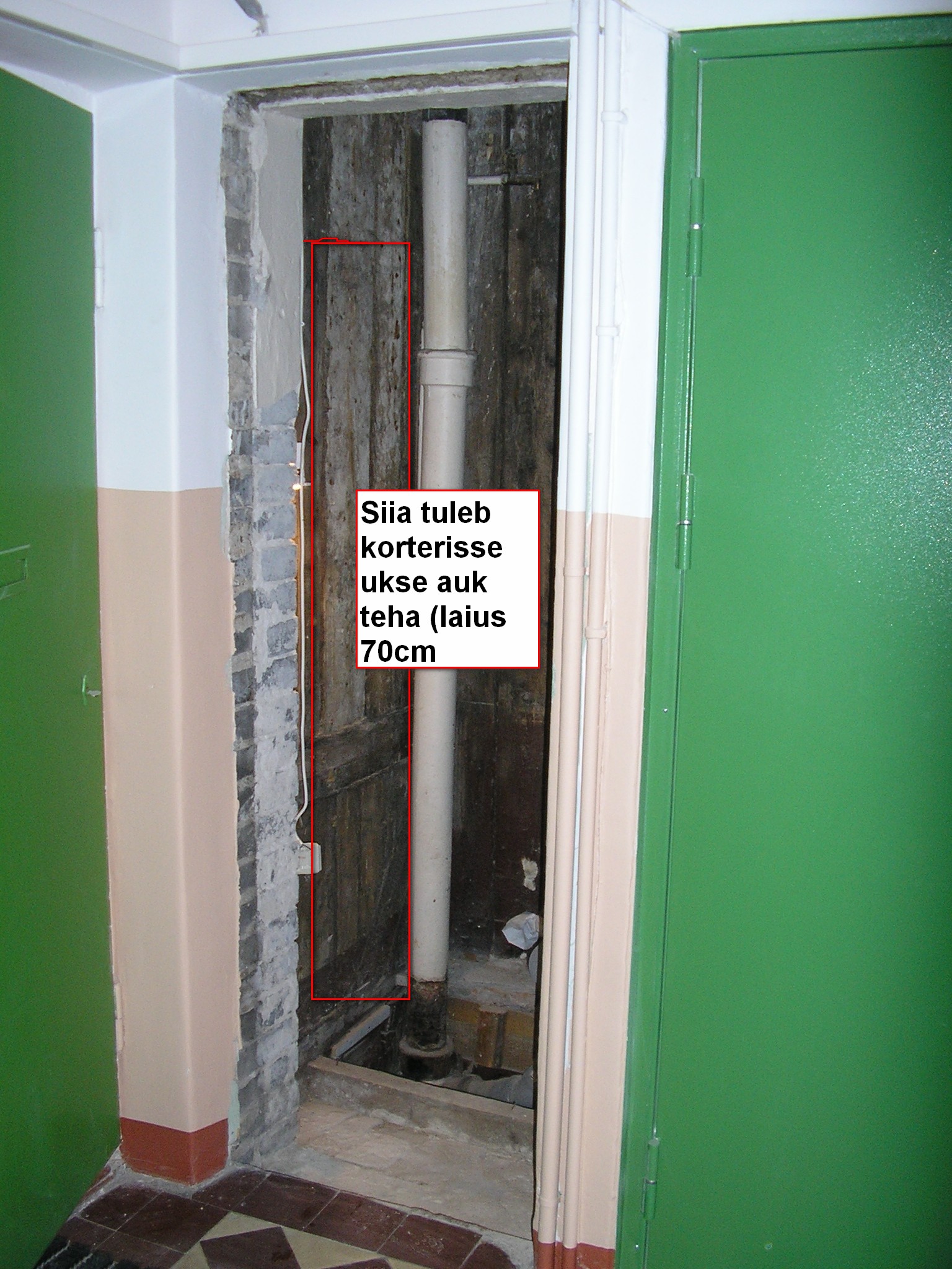 Kivitrepikojaga puumajas on vaja ümber ehitada koridoris asuv WC, sulgeda see koridori poolt ja teha ukseava korterisse.