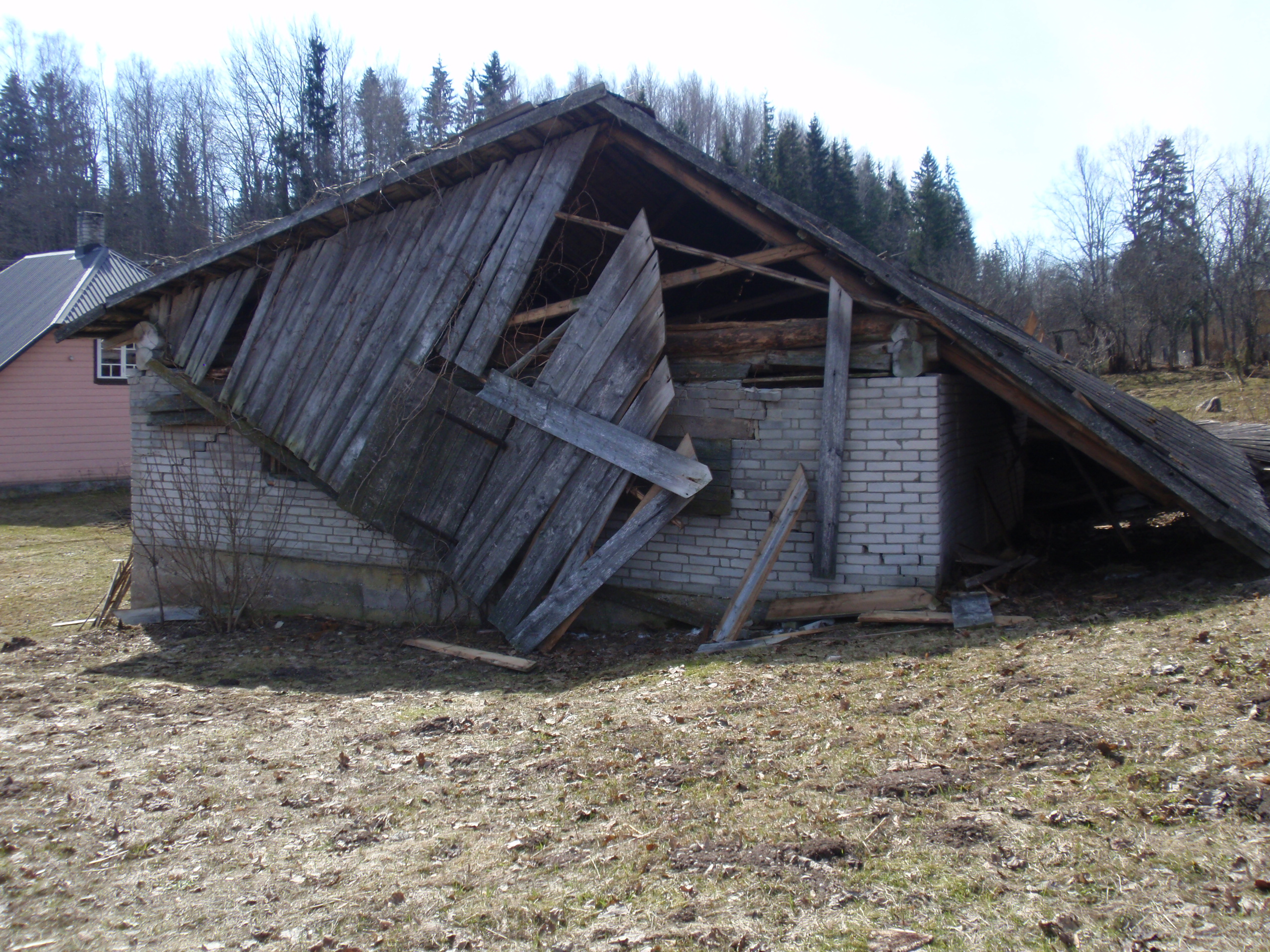 Lammutada sissekukkunud katusega kõrvalhoone Haanjas, 18 km Võrust. Hoone mõõdud 8 korda 16 m, seinad 2/3 ulatuses puidust, 1/3 ulatuses laotud silikaatkividest. Silikaatseinte pikkus kokku 28 m, kõrgus 2,5 m. Ühe silikaatseina küljes on elektrikilp , see peab lammutamisel terveks jääma. Katus ca 180 m2, katteks vana eterniit ja selle all sindlid.