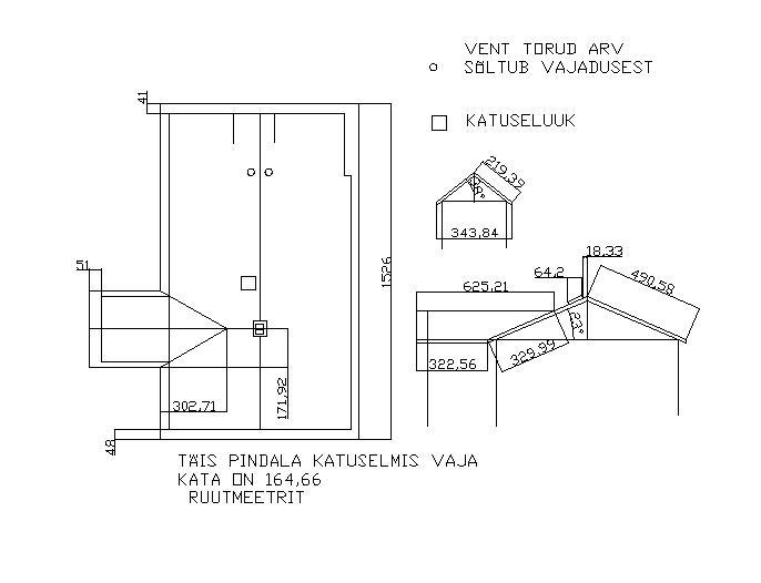 Hetkel on katuseks täis laudistusega katus millel 2 kihti ruberoidi ja suured etterniidi tahvlid. Katusele oleks soov saada ka katuse luuk ja kõngimis teed vajalikudesse kohtadesse. Ning vajalikud katuse ventilatsioonid. Katuse pindala on umbes 175 m2 millest 26m2 on katusest välja ulatuva veranda katus.