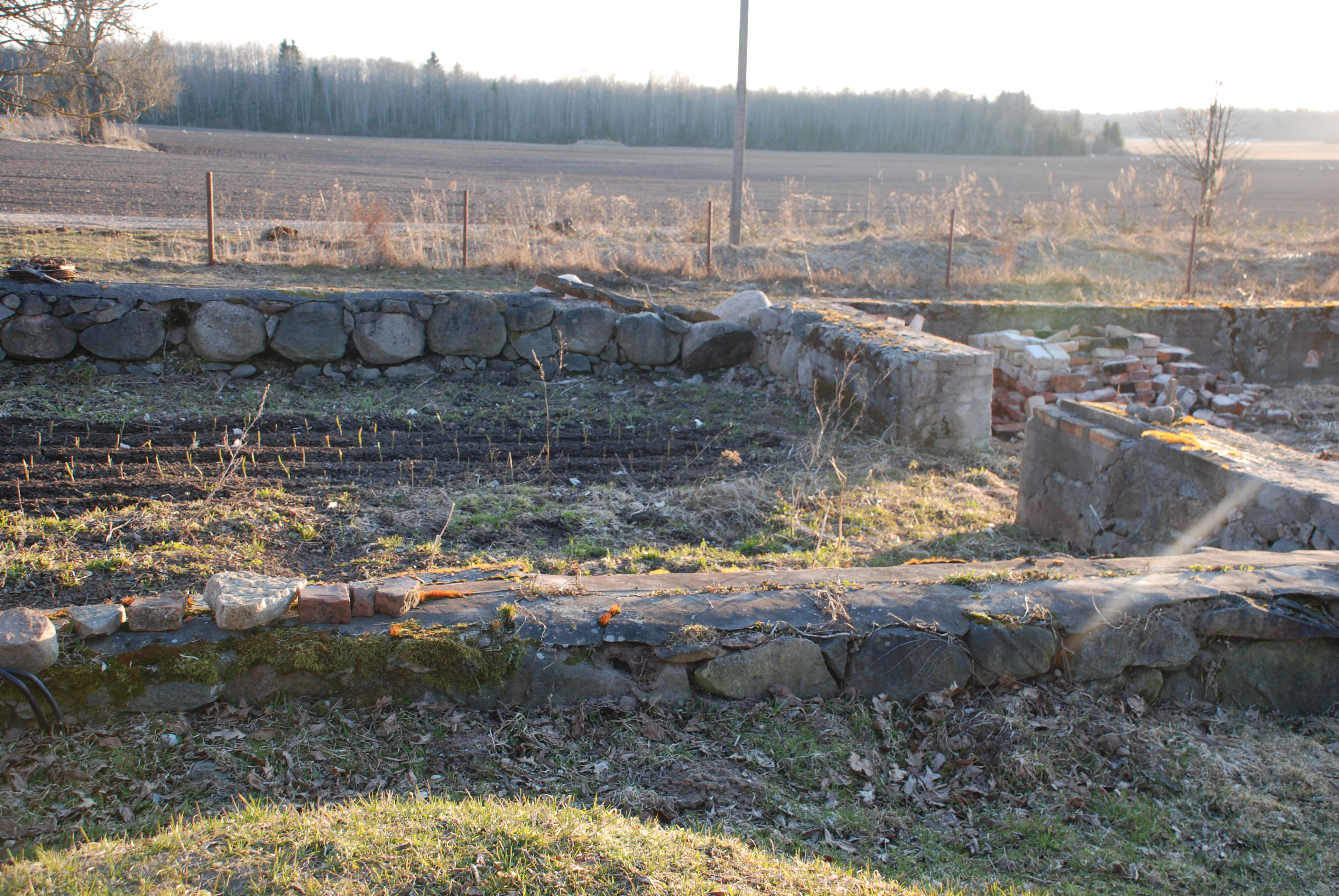 Taastada vanad maakivimüürid 23x8m lahti võtta ylemine kiht 0,7m . Mitte täielikult,umbes 50 % ja peale valada tasanduskiht.