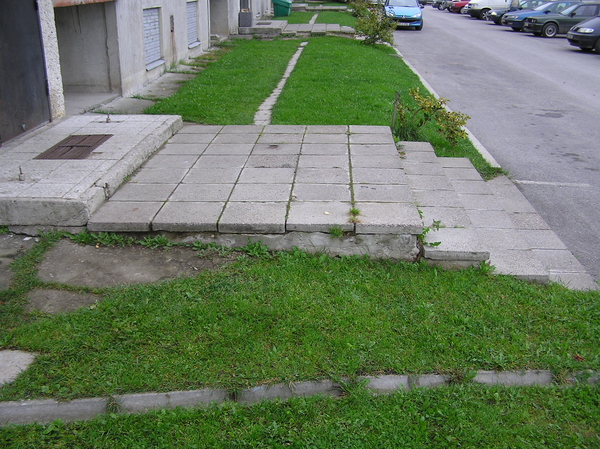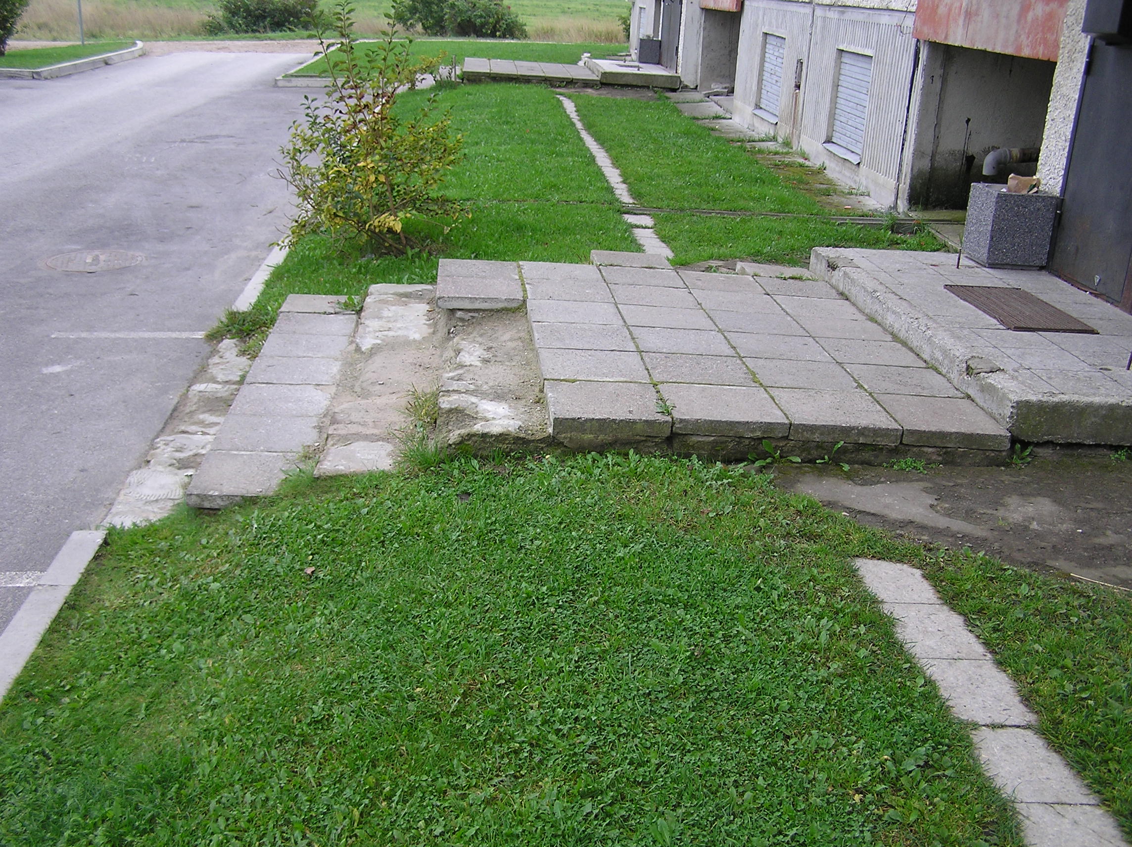 1. Olemasolevate teppide (4tk) katteplaatide, treppide kõrval olevate betoonist kaldteede ja teppide betoonosa täielik lammutamine (v.a. vundamendiplokkidele toetuvad välisukseesised betoonpaneelid). Lammutusprahi utiliseerimine.