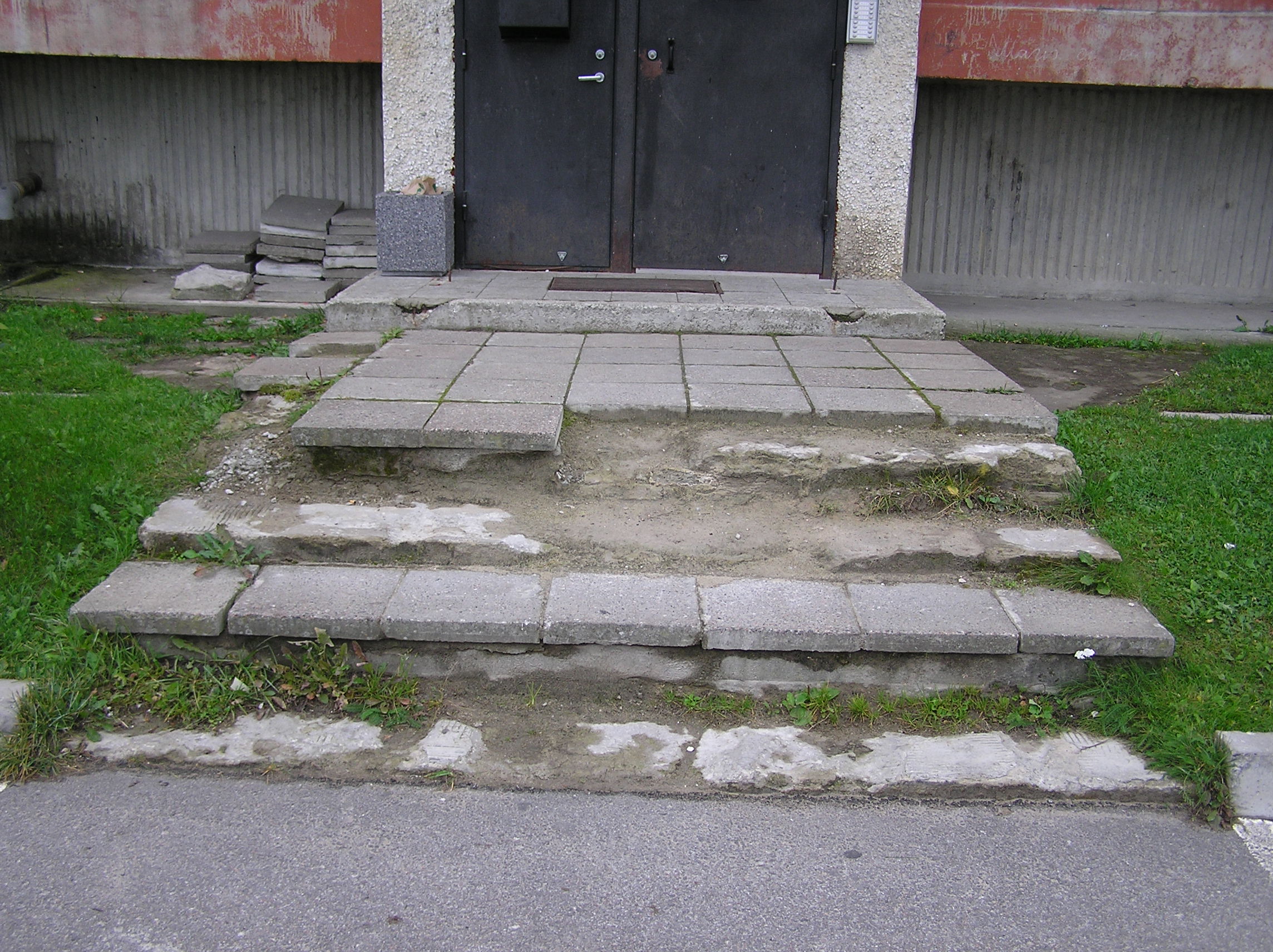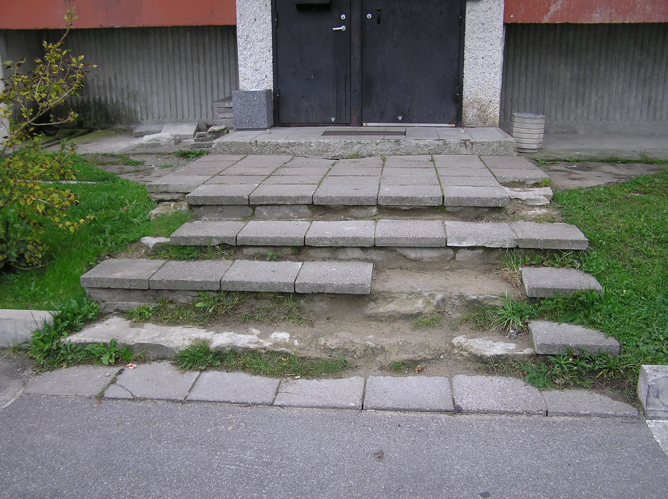 2.4. Treppide katteplaatidena kasutada pesubetoonplaate, nt. OÜ Kiili Betoon toodang (www.hot.ee/kiilibetoon) või AS Alistron toodang (www.alistron.ee). Katteplaatide värvus – hall (analoogne välisuste kõrval olevate prügikastidega).