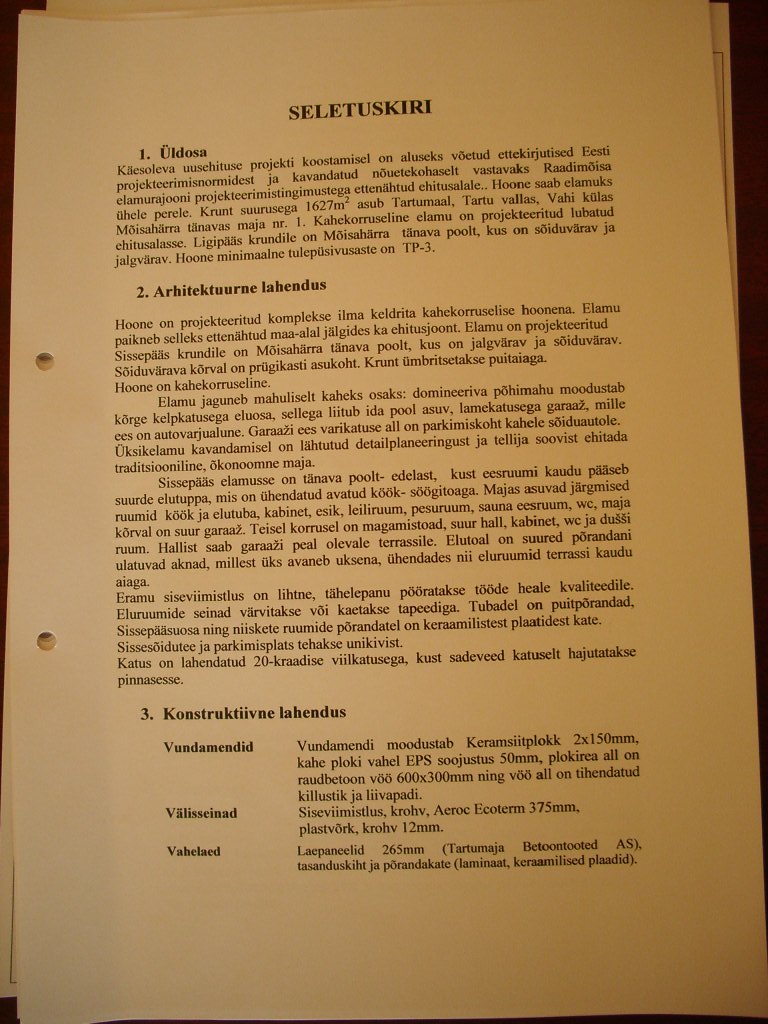 Tartus vallas Vahi külas elamu taldmik,pakkumine teha töödele materjalid tellija poolt(tehnika hanke võitja poolt)