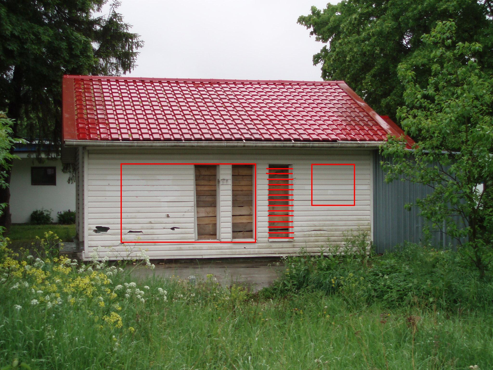 *ühel küljel ühe akna kinni ladumine ja uue suurema akna + väikse luugiga akna paigaldamine