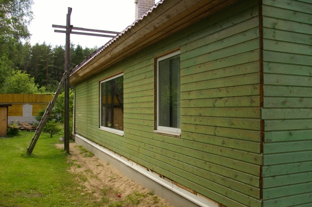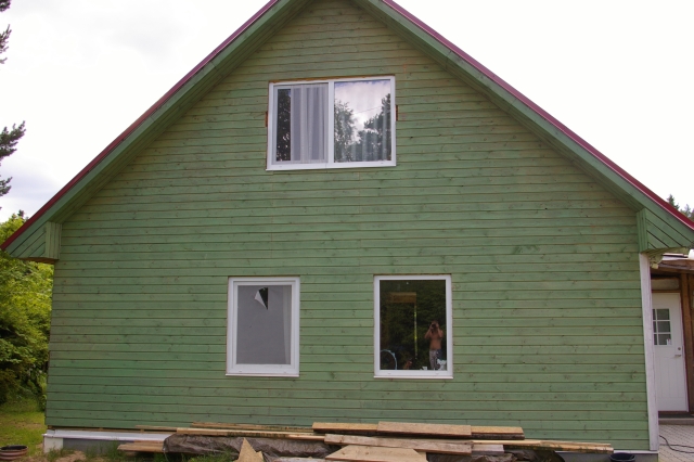 3.) 25x150 okaspuidust laua paigaldus (naela- või kruvi püstoliga) verikaalselt ülekattega + tuulekastid+aknapaled+kõik ääreplekid+vihmaveerennid
