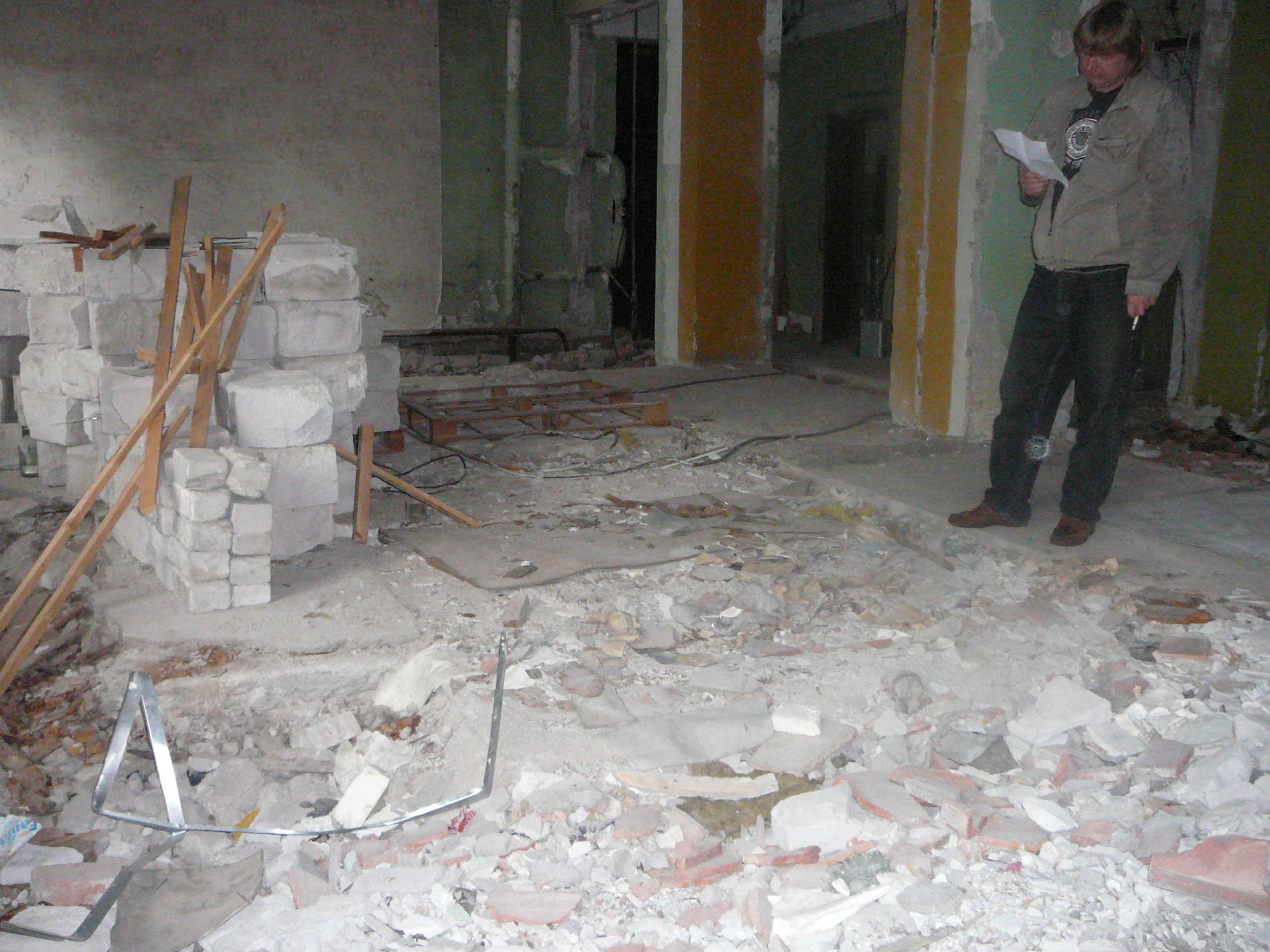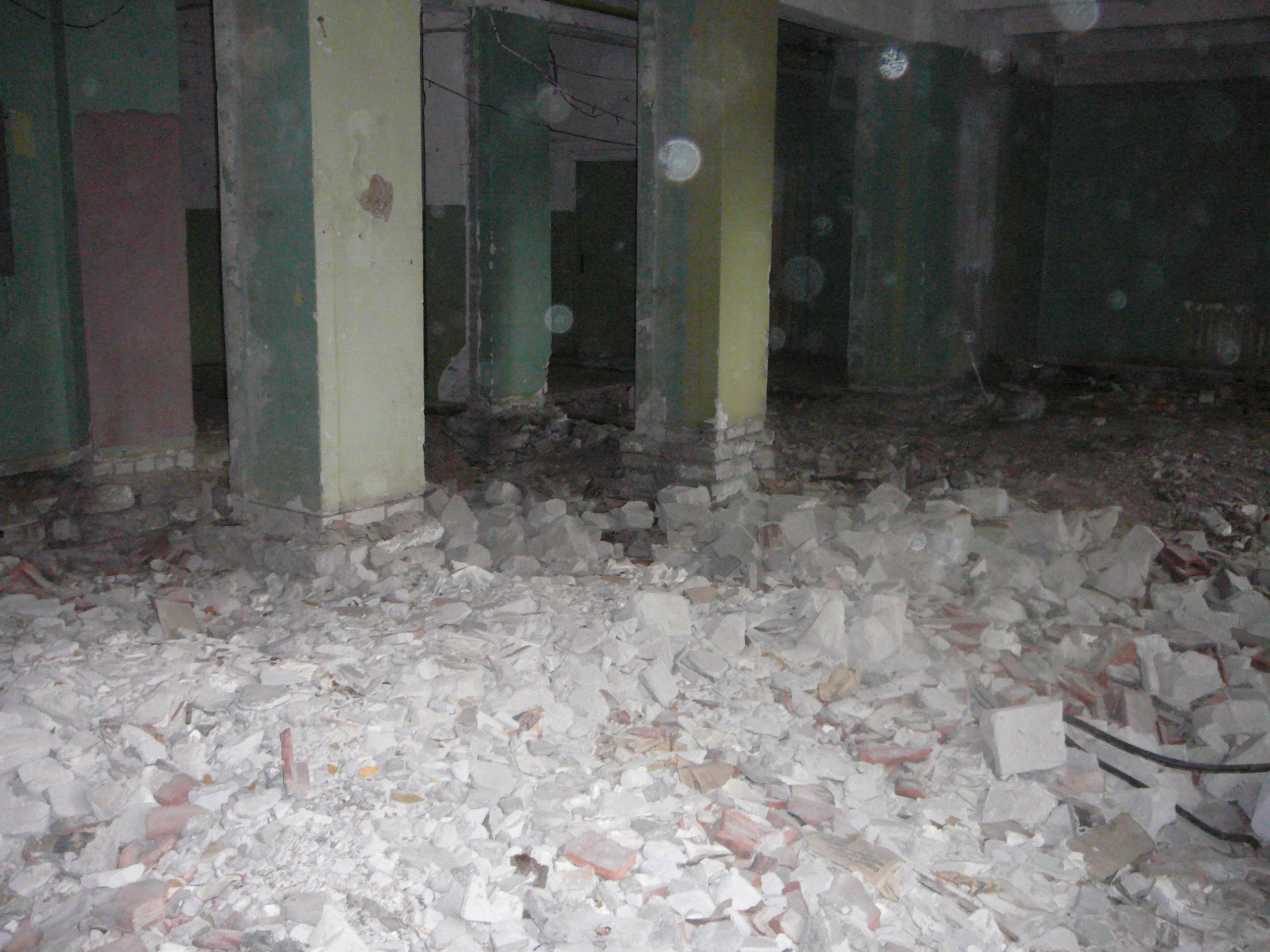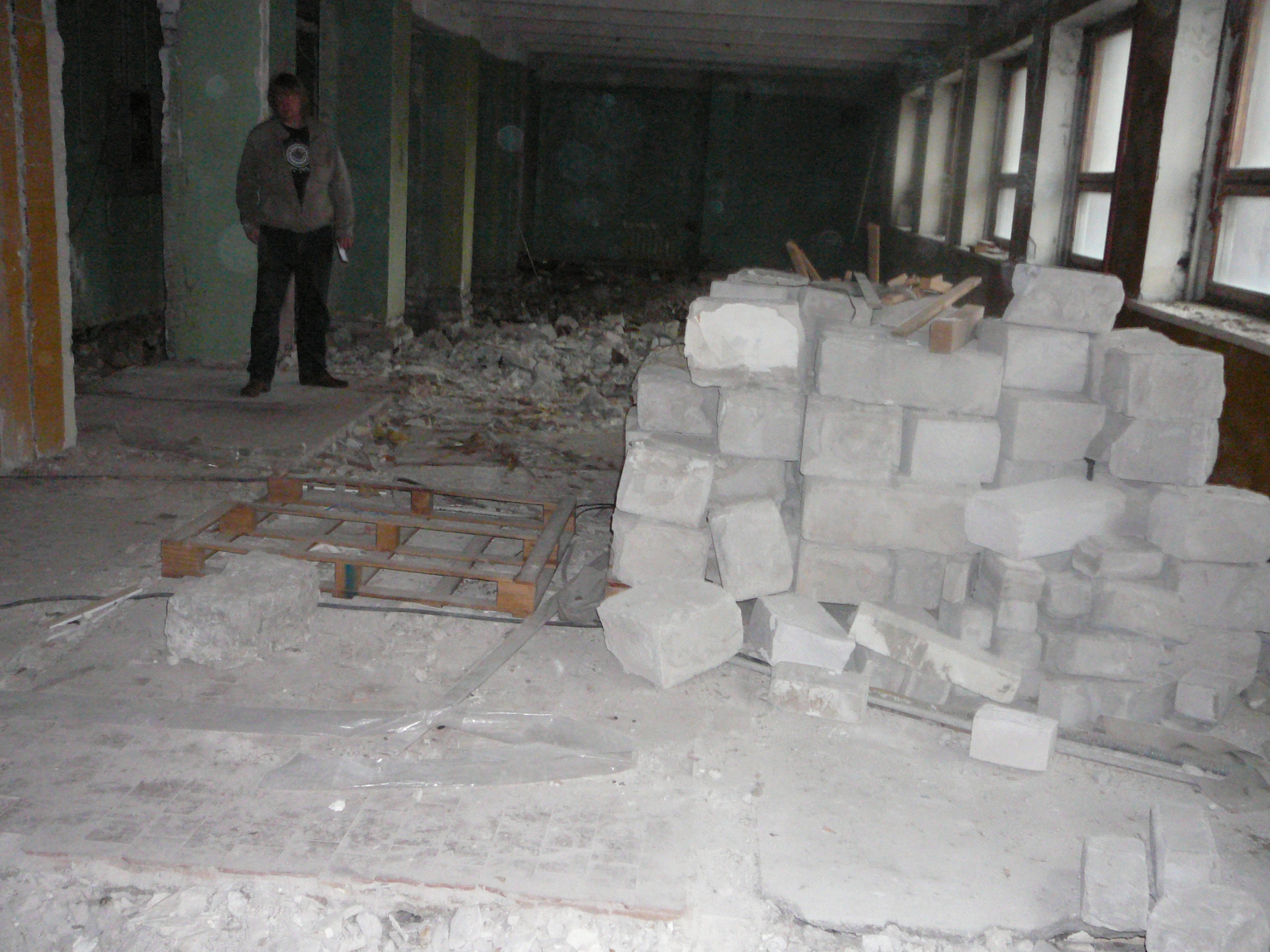 täide, penoplast 100, armatuur, valu, helikopteriga lihvimine (peale tuleb plaat vms).Ruumis postid. Vana põrand on lammutatud.