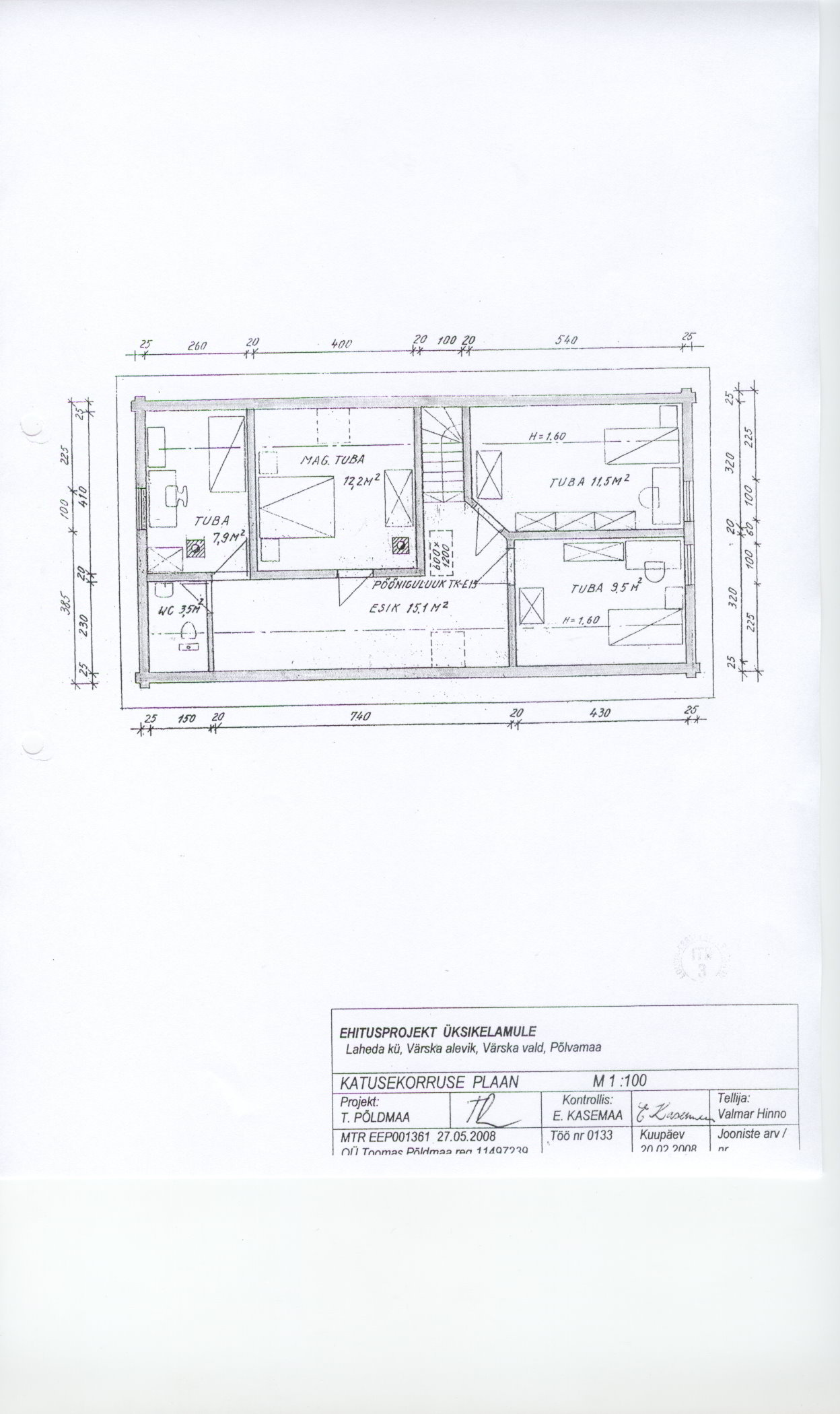 | Ehitusmaterjalid: | Töö tegija poolt |