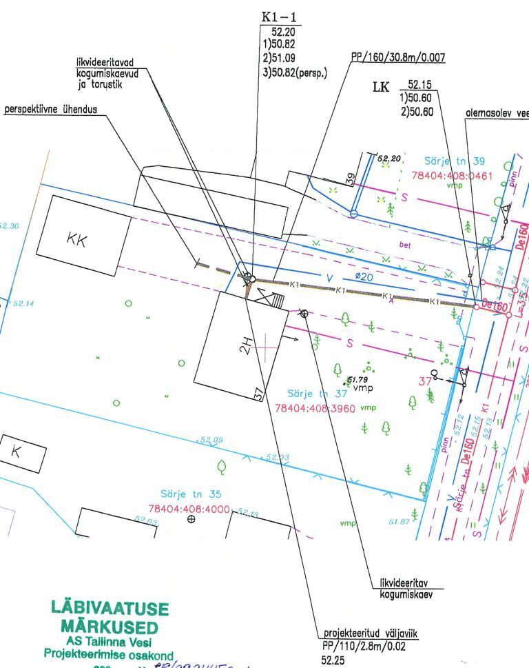 Välja vahetada kasutusel olev vana 20 mm veetoru uue plastik 32mm toruga: Olemas olevast tänava veetrassist paigaldada veetoru PEM PN10 - 32mm kuni maja keldris asuva (eeldab sisendi puurimist vundamenti) veevõtusõlmeni ca 35-36m. Kaeve ja montaa¸itööd. Veetoruga ühisesse trassi paigaldada 160mm plastkanalitoru (torud olemas) ol.olevast tänava liitumispunktist kuni ol.oleva betoon kaevuni (31m). Kaevu teha ava toru jaoks ja ühendada. Kaevu ja maja vahel olev vana kanalitoru (ca 3m) välja vahetada, koos vundamendist läbistusega (110mm) ja ühendada ol.oleva majasisese kanalisatsiooniga. Teha tagasitäide koos pinnase tihendamisega, ligipääs hea, pinnas liivane. Tööle garantii.