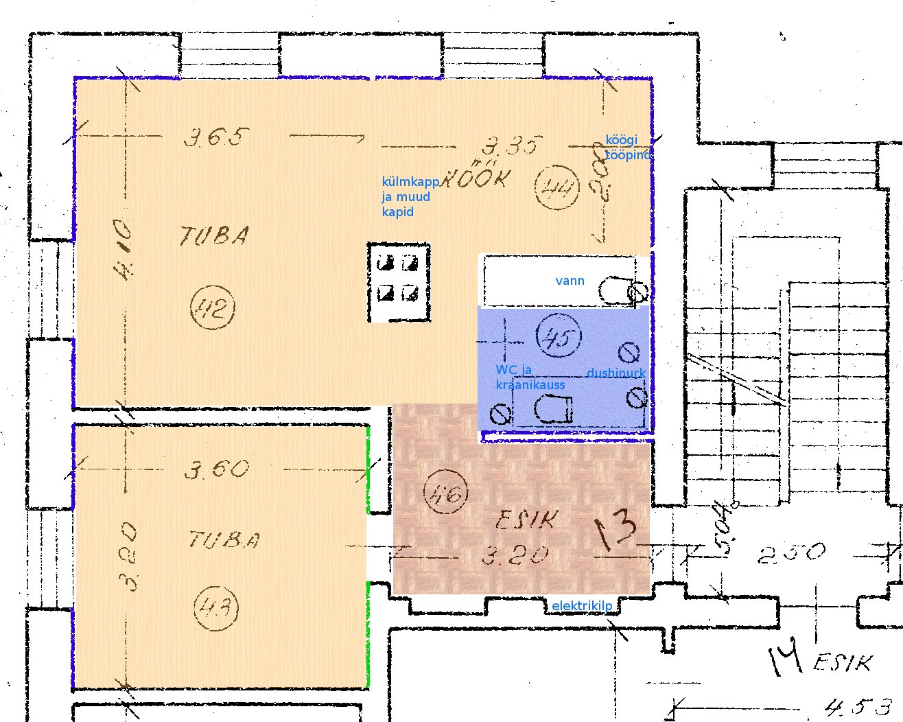 * lõppkatte paigaldus (massiivlaud ja natuke korki koridoris, vaata ka korteri plaani)