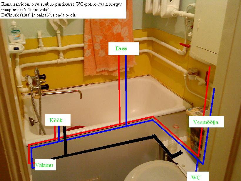 Hetkel sees vann, mille asemele tuleb du¨¨iala (pool ruumi mõõtu) - kuidagi paigaldada äravool - dussi + valamu + köögi omast.