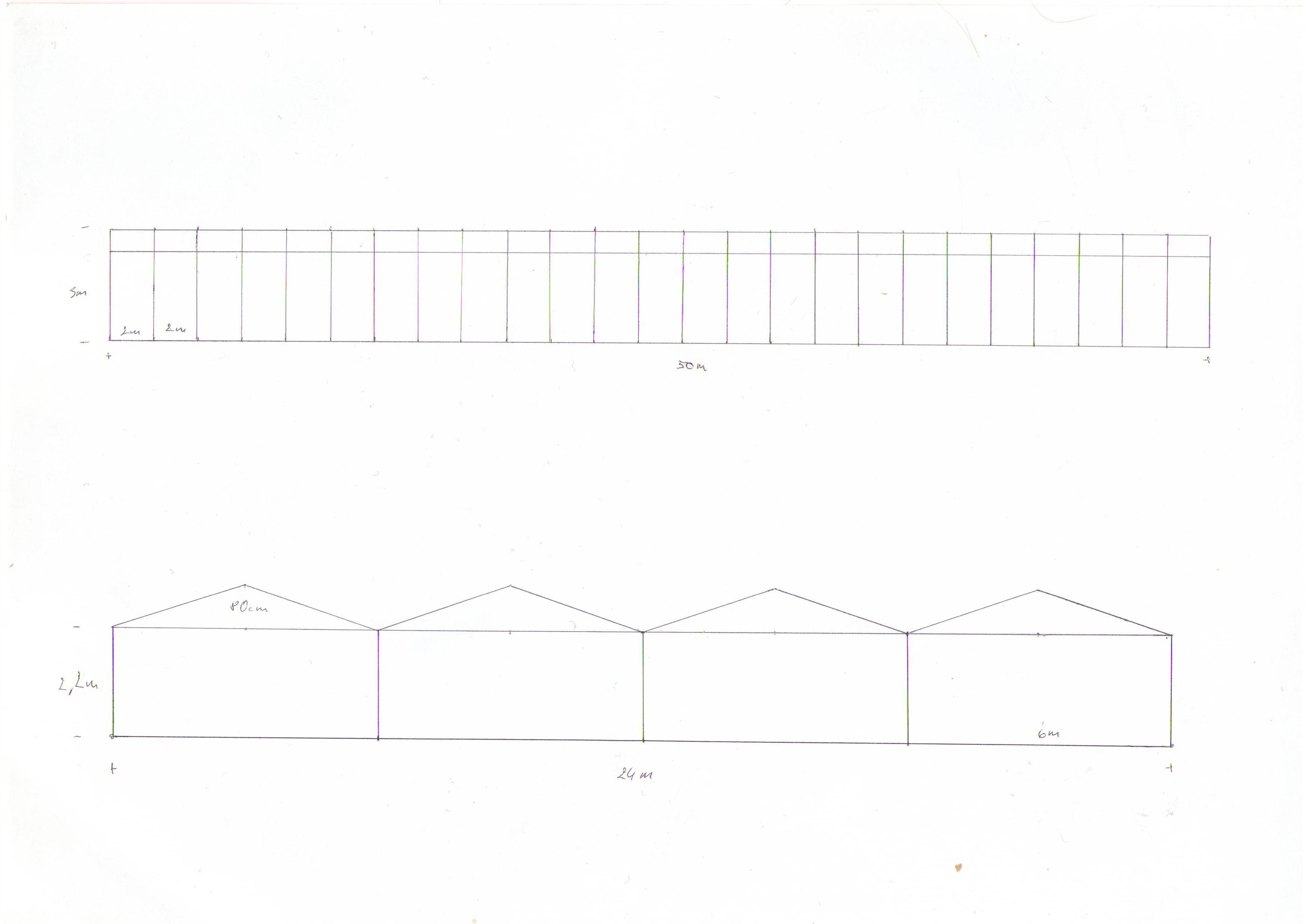 Hoonele tuleks 2 ust. 24 laius tähendaks nagu oleks 4 kasvuhoonet kõrvuti. 4 harjaga hoone.