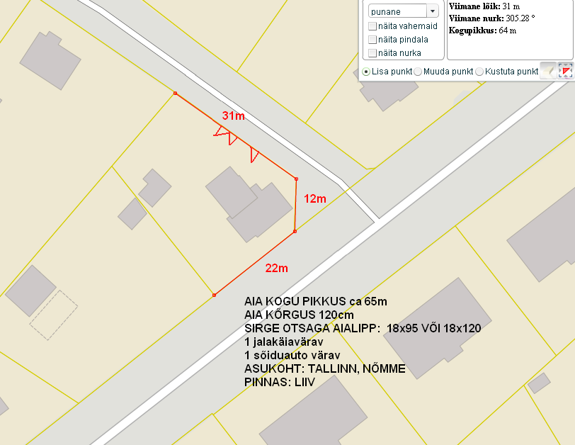 Olemasoleva amortiseerunud puitaia demontaaz (ladustamine hunnikus krundil) ning uue sirgeservaga puitaia paigaldus 18x95 või 18x120 aialippidest (kogu puitmaterjal immutatud ning lippide vaheks 18mm). Aia kõrgus 1.2m. Uute metall postide paigaldus (pinnaseks on Nõmme liiv). 1 jalgvärav 1m ja 1 sõiduauto värav 3m. Aia kogupikkus ca 65m.