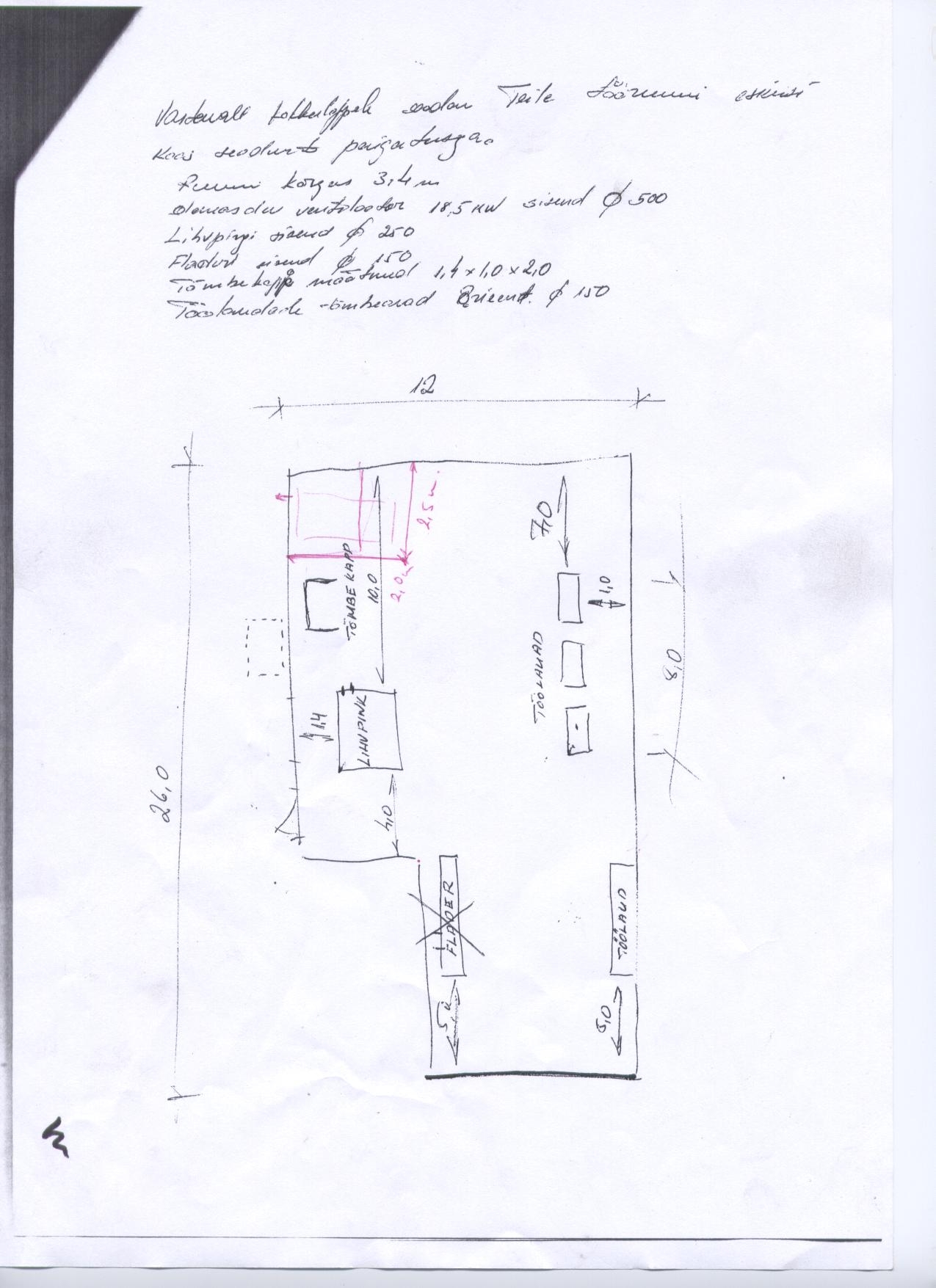 Olemas filtersüsteemid.Trassi kogu pikkus sisse ja välja puhe suurusjärgus 80m.Tootmishoone mõõdud on lisatud manuses.