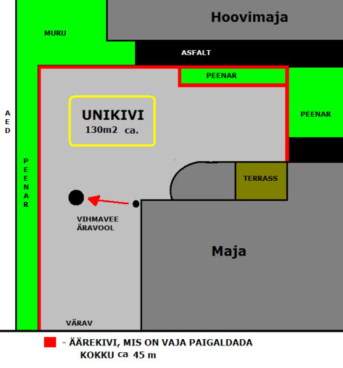 Objekt asub Pärnus. Renoveeritava hoovimaja ja elumaja vahele on vaja hoovile paigaldada unikivi ja äärekivi.