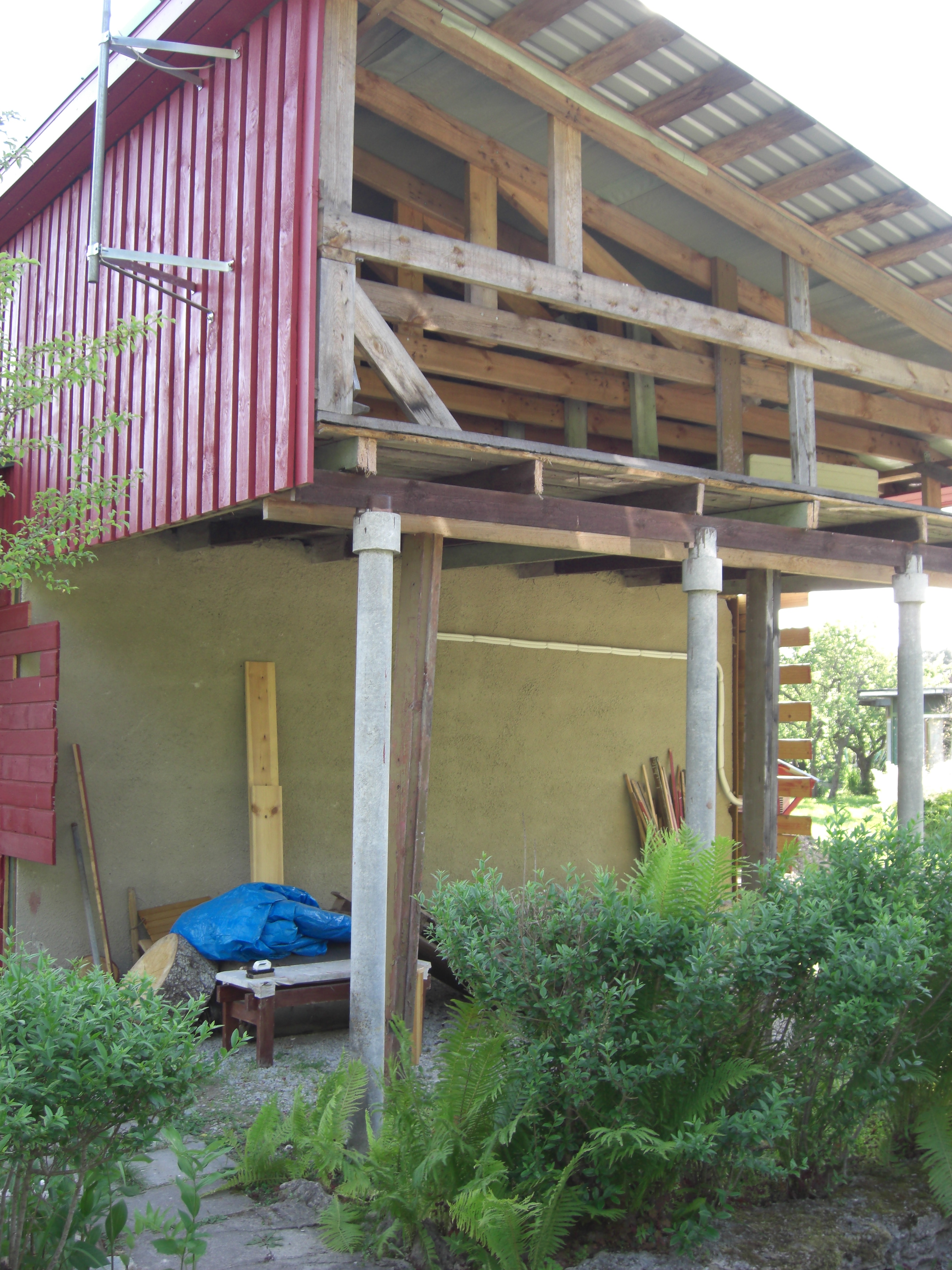 Valamise ajaks tuleb katuse äär toestada, hiljem hakkab ehitatava seina karkassile toetama.