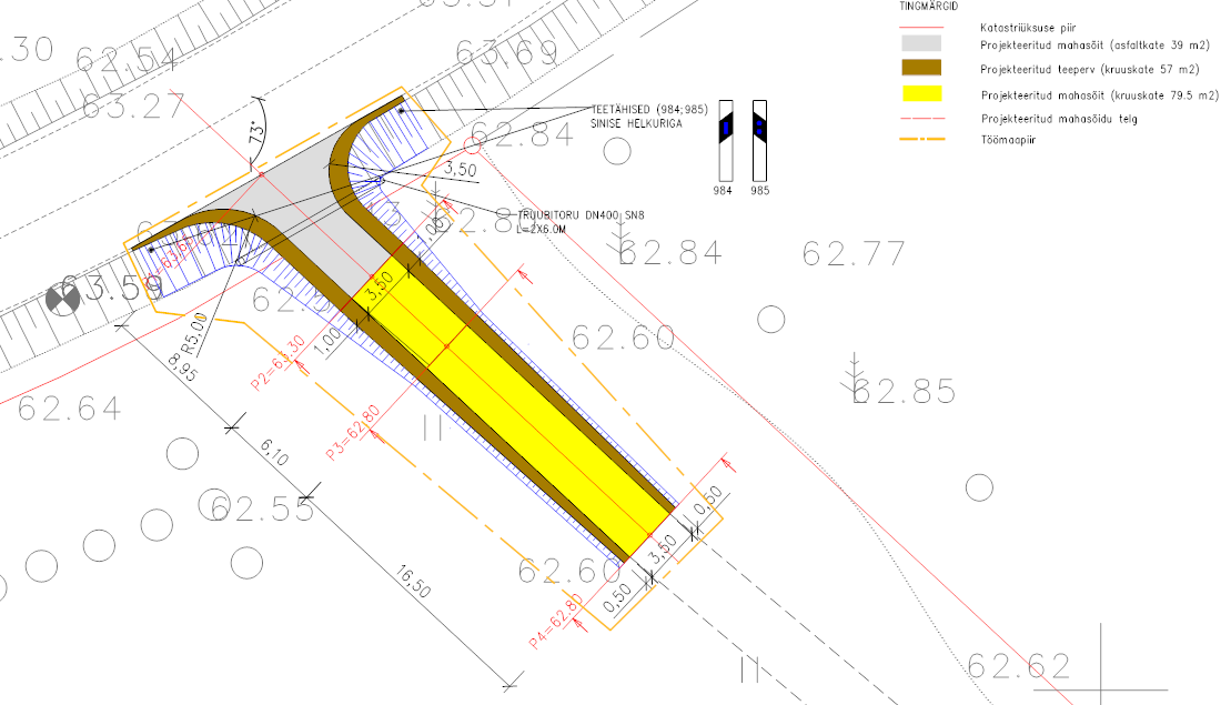 31,5 meetrise mahasõidu rajamine riigimaanteelt kõrguste vahele ca 1m. Tööde mahtude info märkustes.