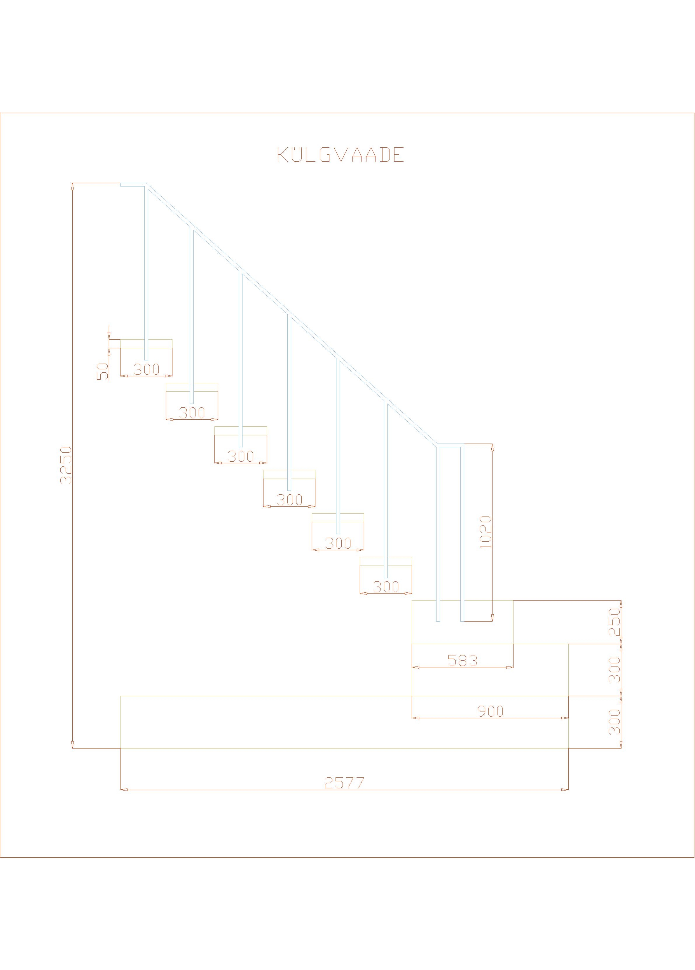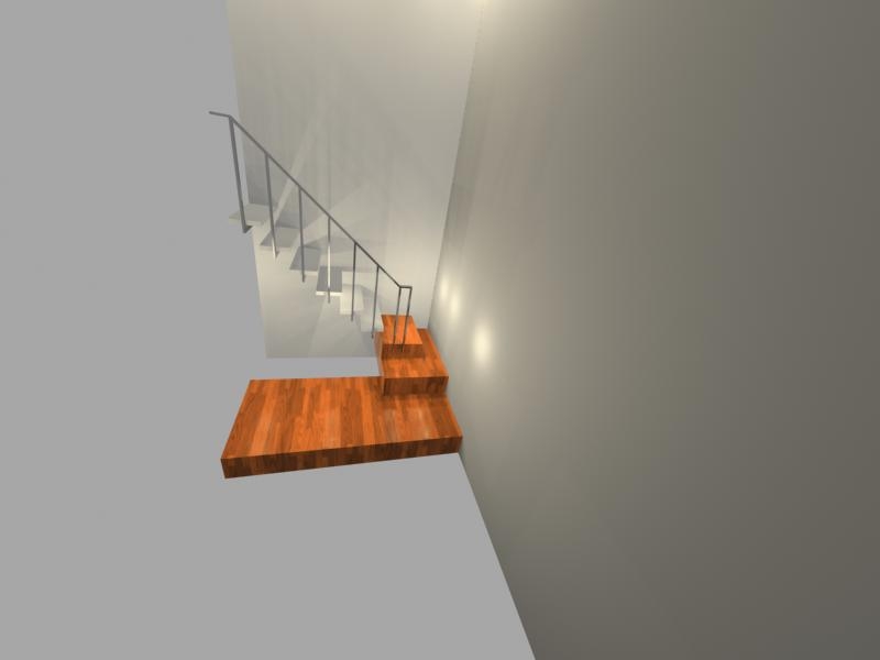 Trepp elumajja, ülemisedastmed heledast puidust ja laumised tapitudpuidust ja käsipuu metallist. Kinnitus kõrvalolevasse seina. Vt failidest.