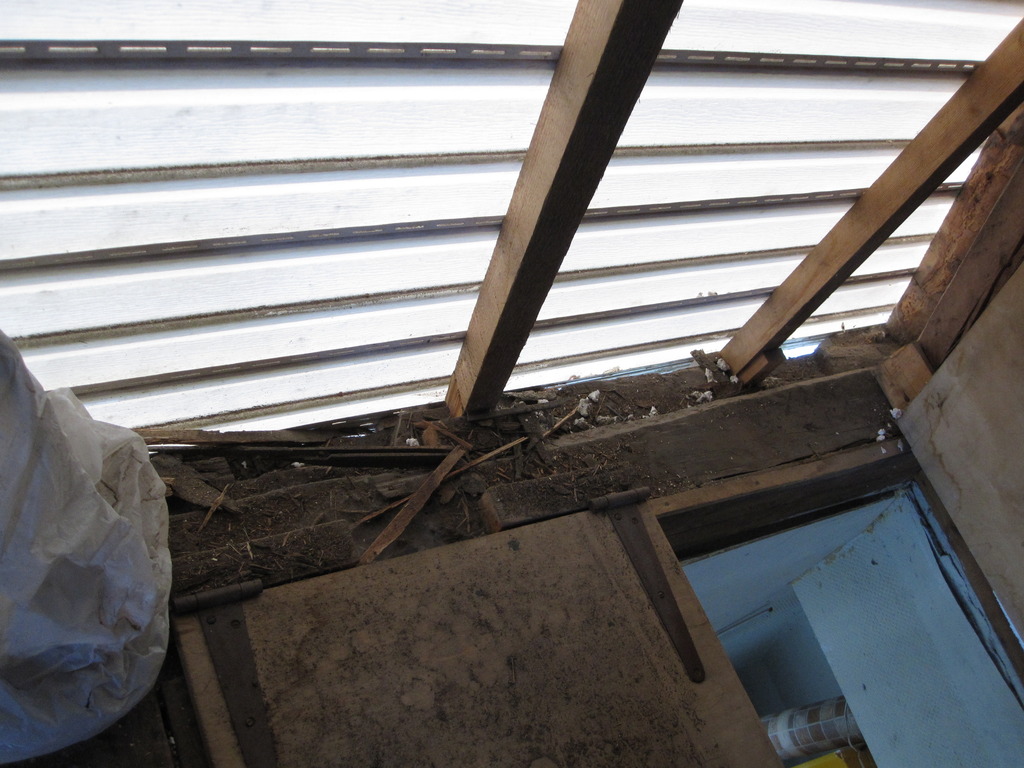 * ühel suurel otsaseinal all laudis puudub, teistel kahel on vana laudis all. Seespool soojustust ega lisa katte materjale ei ole.