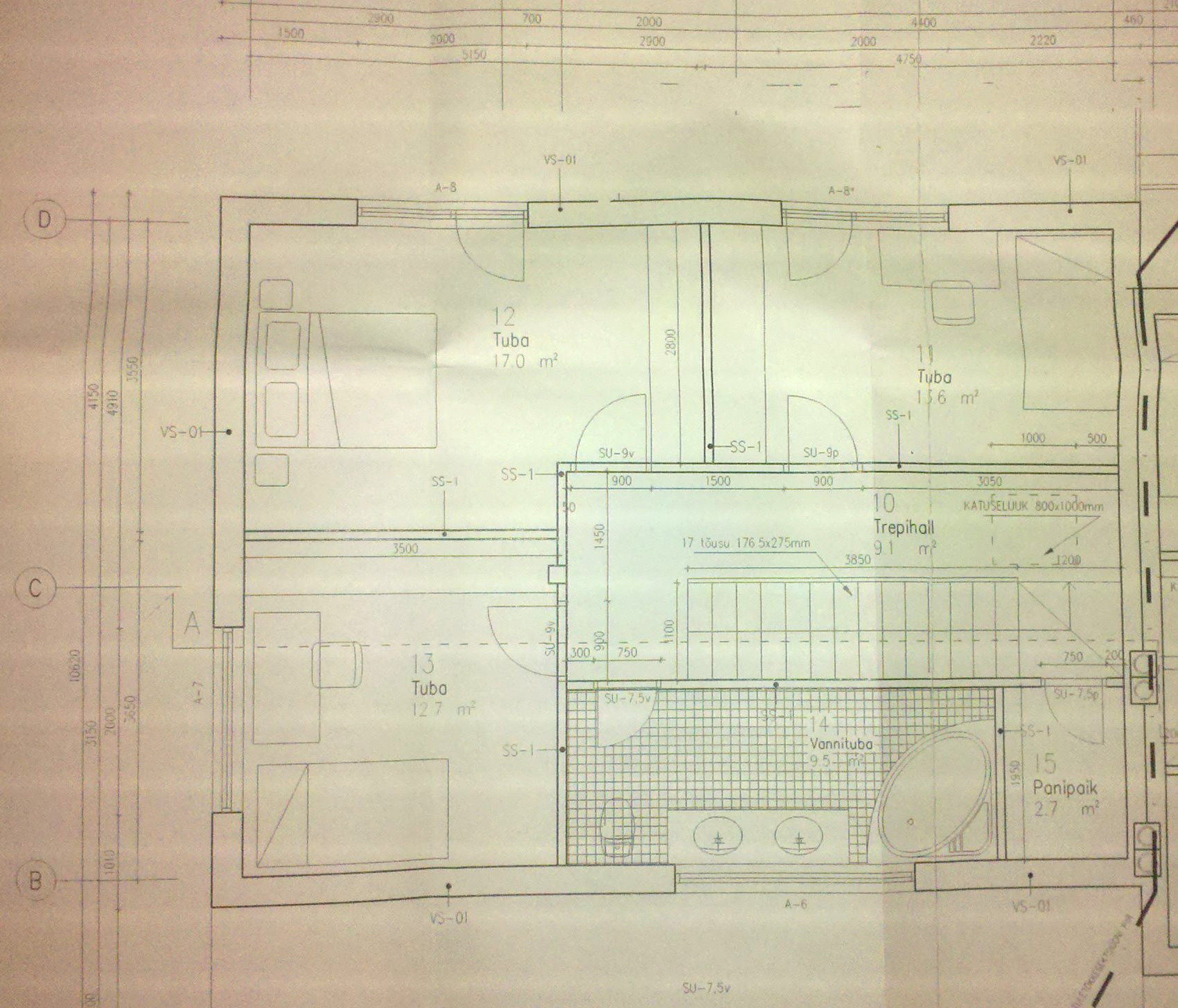 Sama 1.k pesuruumis. Seal eelnevalt vaja vana plaat üles võtta (1/2 ulatuses pandud) sest tehtud ilma vuugivahedeta ning seejärel uuesti plaatida. Joonisel näidatud saunal on vaja teha põrand ja paigaldada sauna.