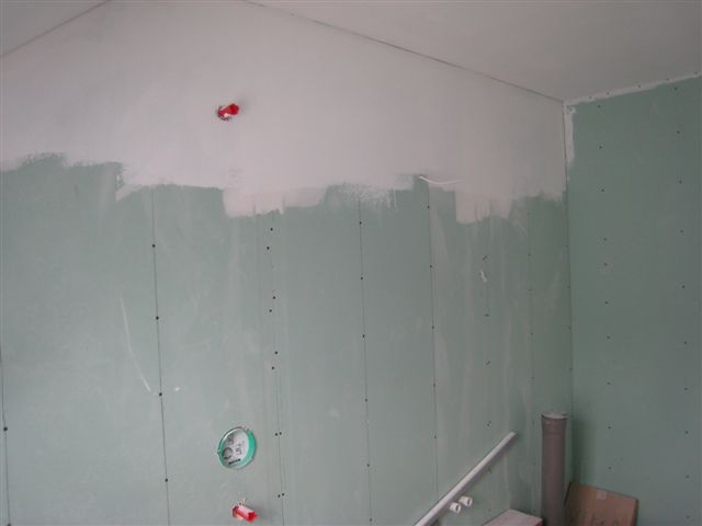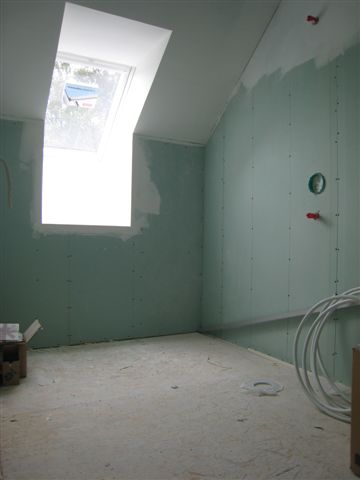 Sein laiusega 1800 ja uksega sein lähevad puitvoodri alla (11,61m2), katuseakna alune sein värvi alla, valamu&du¨¨inurga sein plaatide alla kõrgusele kuni 2m, põrand läheb plaatimise alla (6,55m2). Kokku on seinte plaatimist u 7,23 m2 ja värvitavat pinda u 4,5 m2.