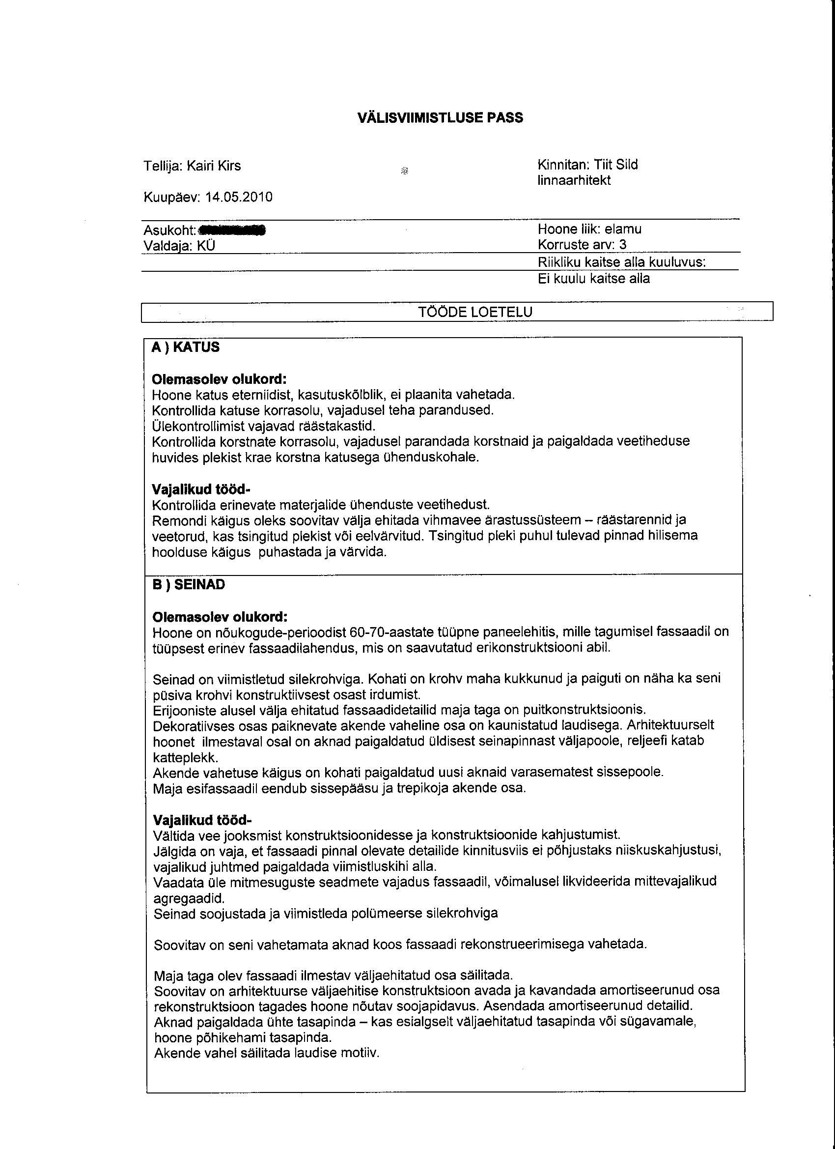 | Tööde lõpp: | T, 31. mai, 2011 (Soovituslik) |
