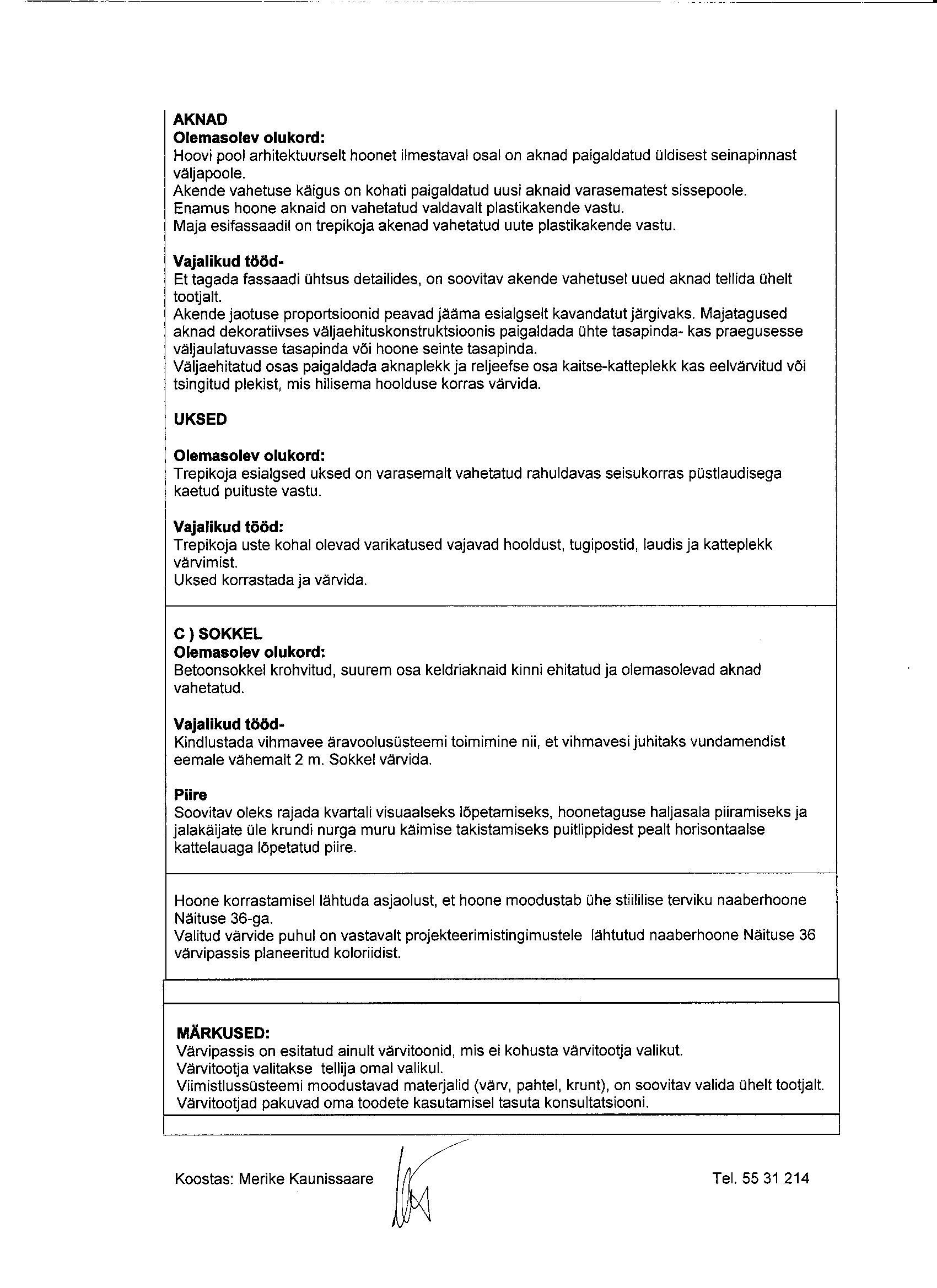 | Ehitusmaterjalid: | Töö tegija poolt |