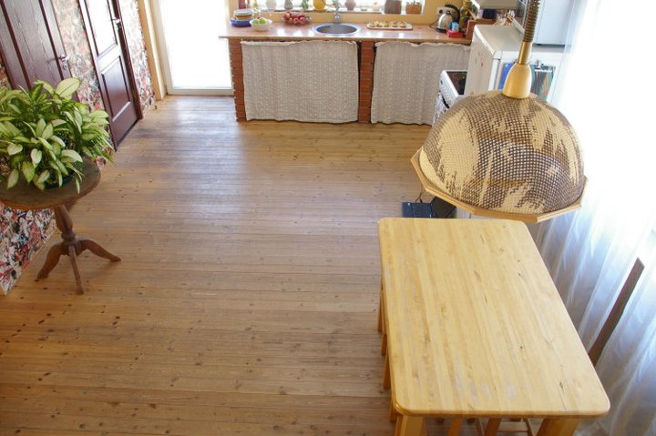 Männipuidust põrand. Kokku 3 tuba : ~80m2. Objekt asub 25km Tallinnast.