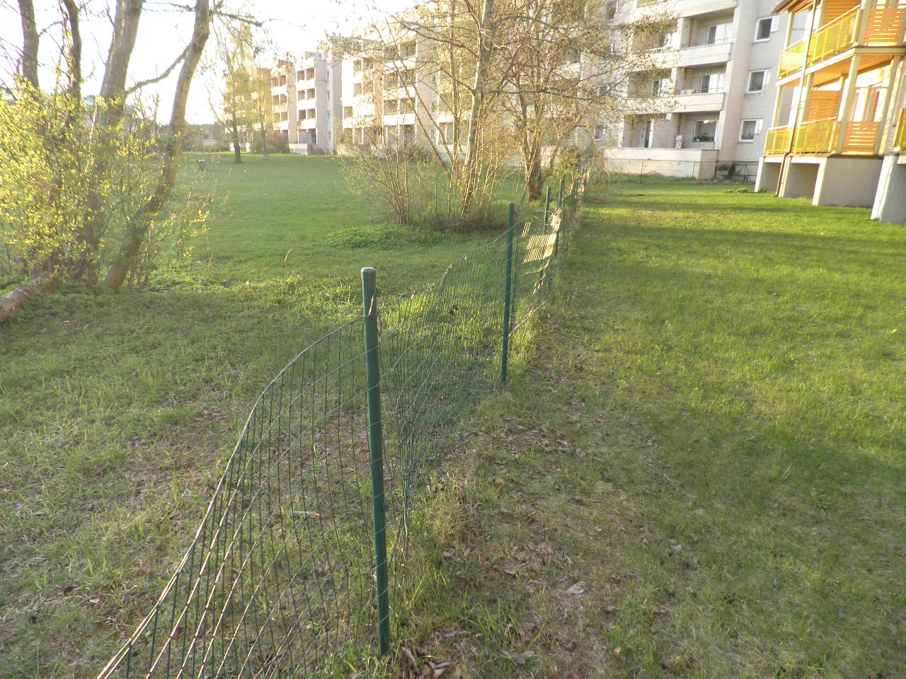Plastkattega traatvõrkaia pingutamine, parandamine, korrastamine. Uute pingutustraatide ja manuste paigaldamine. Võrgu õgvendamine ja sirgeks painutamine, parandamine. Aia pikkus 115 m, kõrgus 1,2 m.