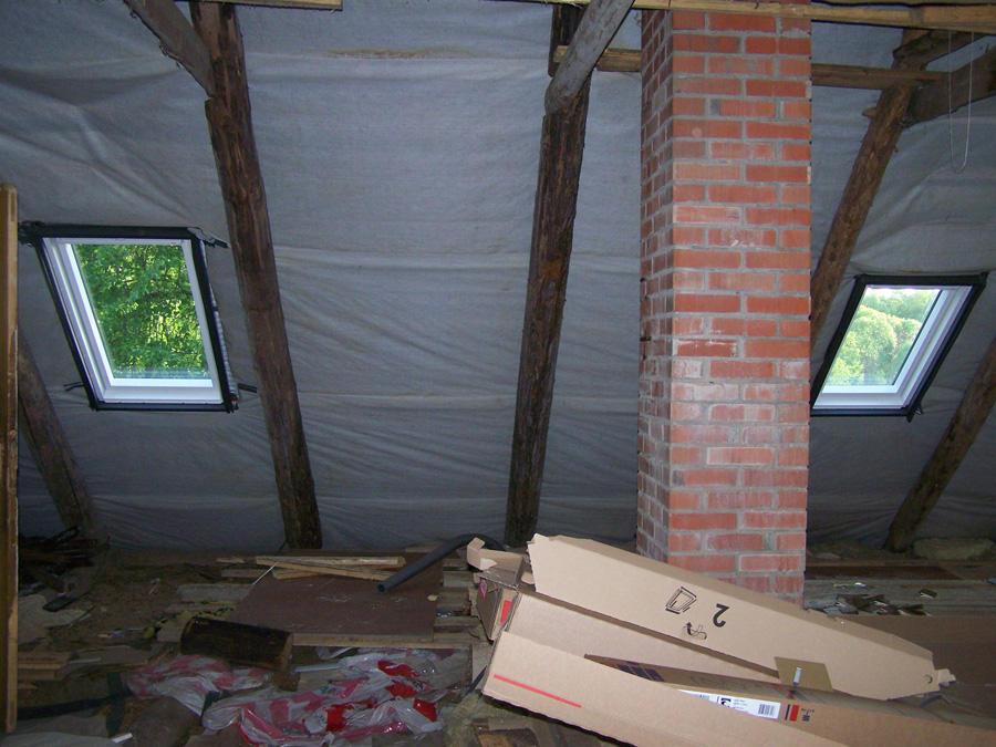 Juba paigaldatud katuseakendega (n=7) viilkatusealuse (45kraadi) soojustamine 30 cm kivivillaga koos nõuetekohase tuuletõkke ning aurutõkke paigaldusega ning kipsplaat-siseviimistlusega. Paigas on juba katusekatte (puitsindel) alune kile. Otsaseintel juba paigaldatud 20cm klaasvill-soojustus, vajalik 10cm paksuse lisakihi paigaldus kivivillaga. Katusealune pind:8700x11300, katuseharja kõrgus II korruse hetkel olemasolevast laepealsest tasapinnast: 4700 mm.