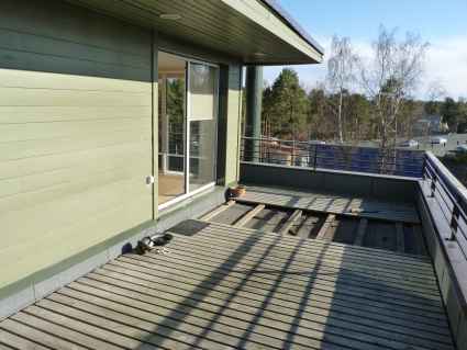 Terrass, pindalaga ca 40 m2 paikneb 3-kordse korrusmaja katusel. Suurem osa on küljepikkustega 9,5x3,3 m. Lisaks on paar kitsast riba 1x4 m ja 1,5x2 m. Uus terrass peaks koosnema eemaldatavatest kilpidest (suurem ala koosneks 5 kilbist).