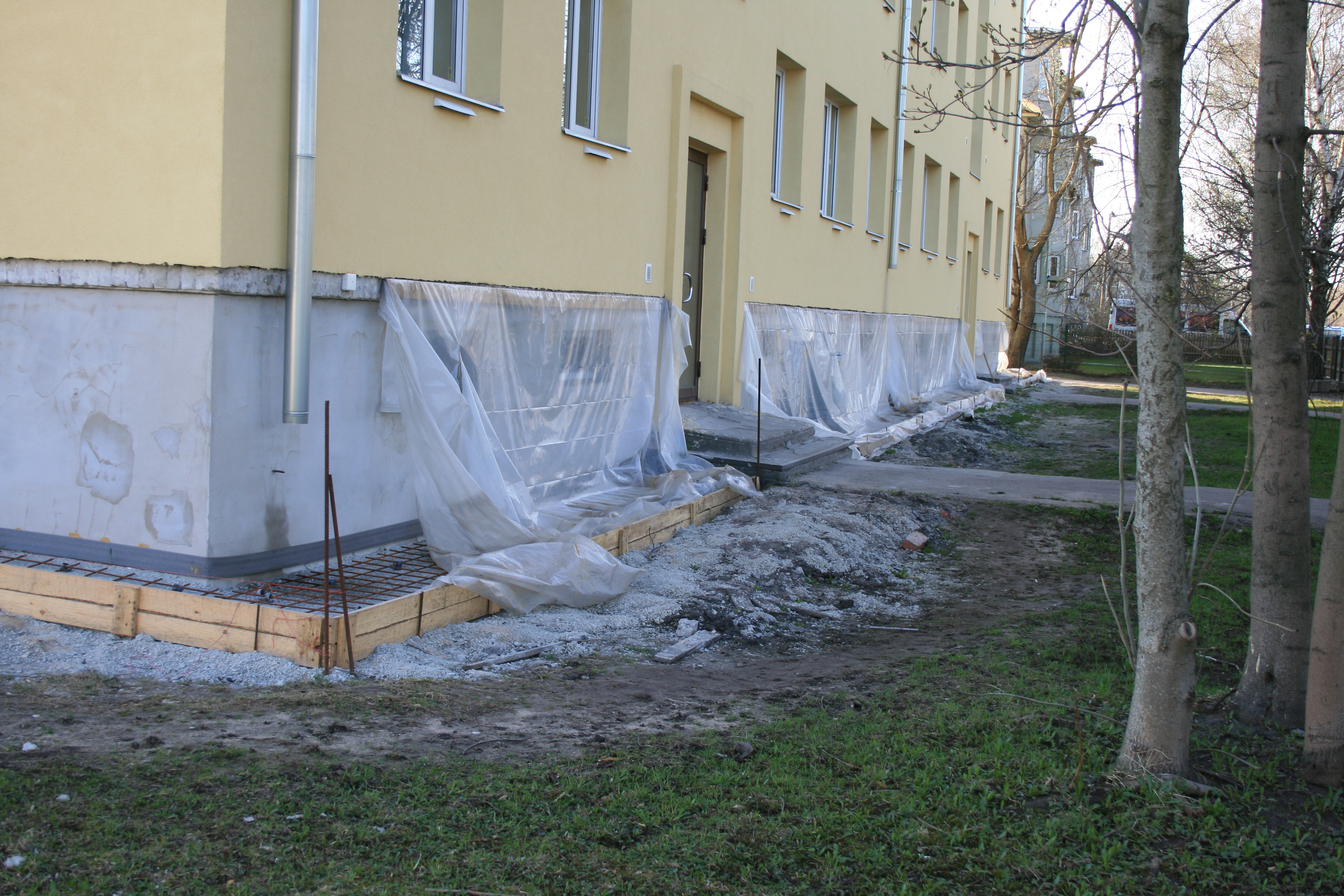 a)Esifassaadi trepid(2tk.) tasandatakse betooniga, tagades viimistlusplaadi paigalduse võimalus. ühe trepi pind1,4x2,5m betooni paksus 0,05m.