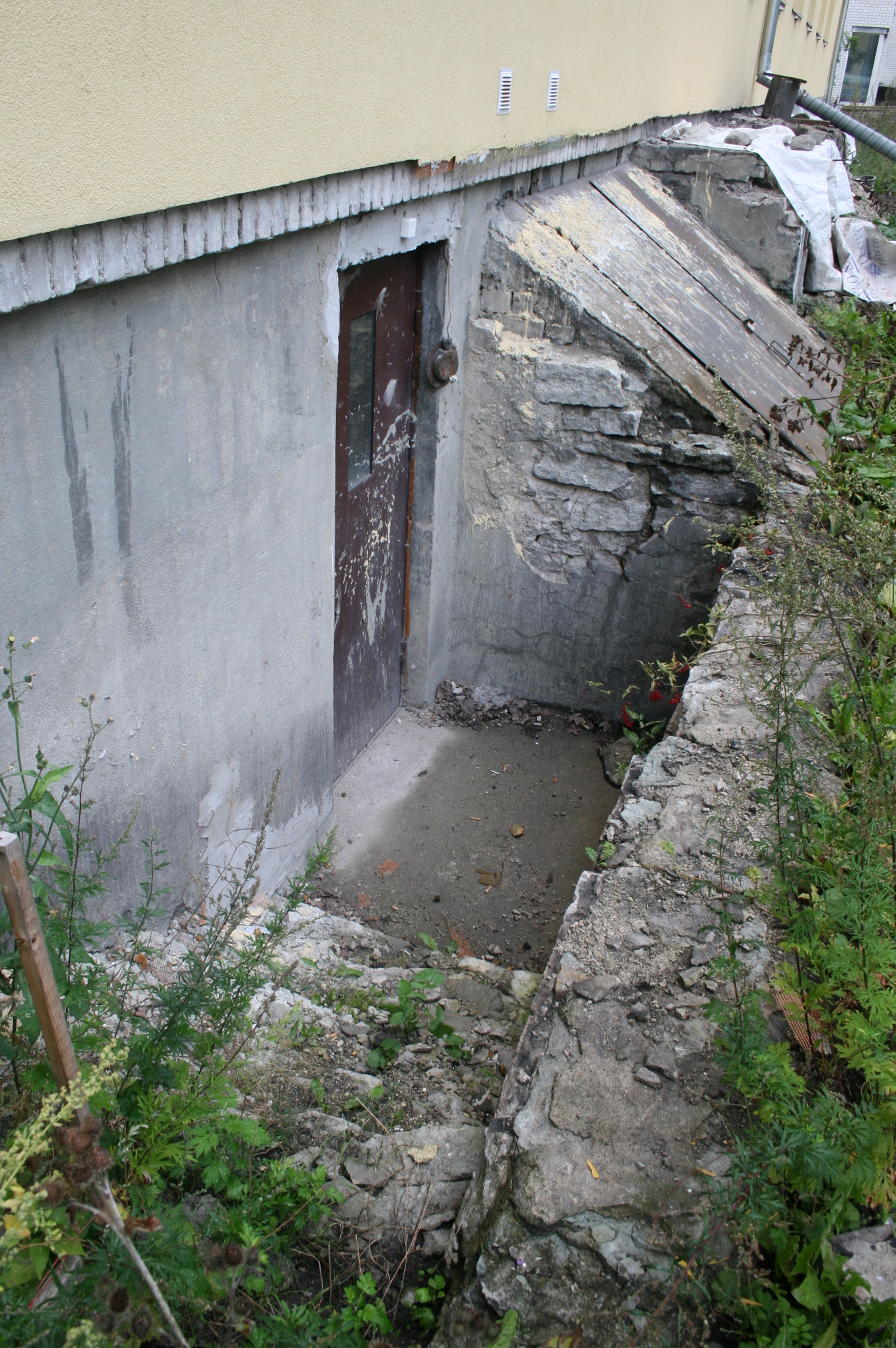 c)Tagafassaadi teine,terve trepimarss ja alusplaat korrastatakse. Tugimüürid mõlemal trepil lammutatakse(tellis ja paekivi) ja betoneeritakse uuesti. Betooni kulu tugimüüridele 2,5m3.