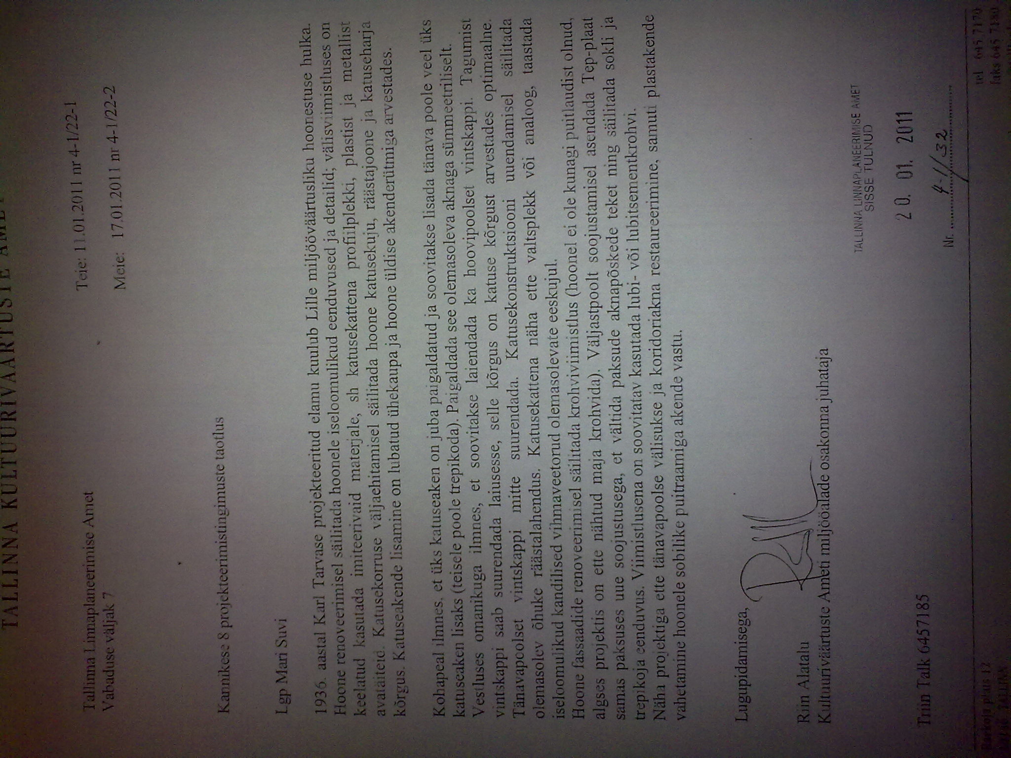 Korraldaja vastus: 10.09.2011 11:09