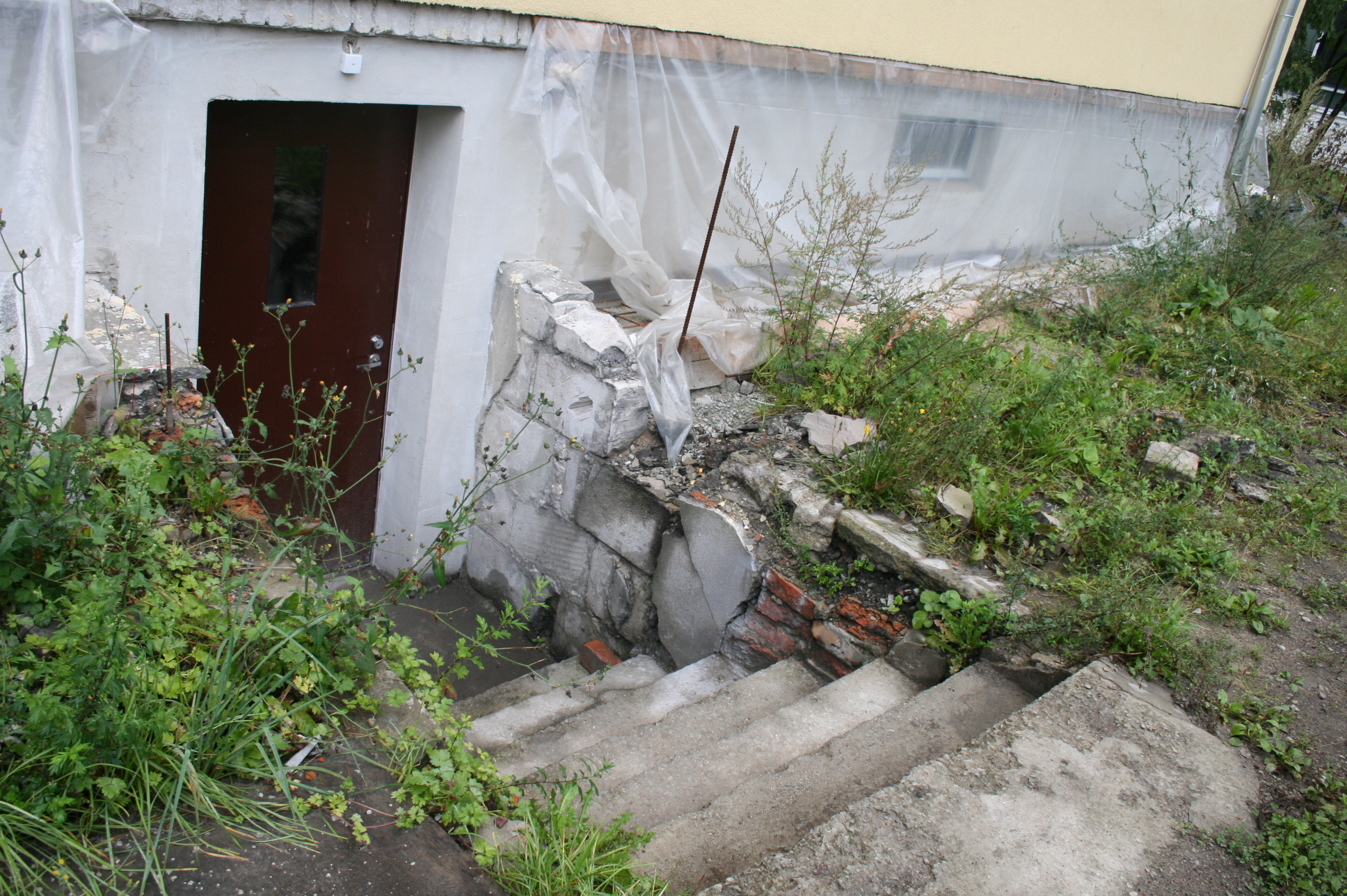 Vaja lammutada trepi tugimüürid, Ehitada saalungid, valada tugimüürid. Tugimüüri pinnasega kokkupuutuv osa kaetakse võõphüdroisolatsiooniga.