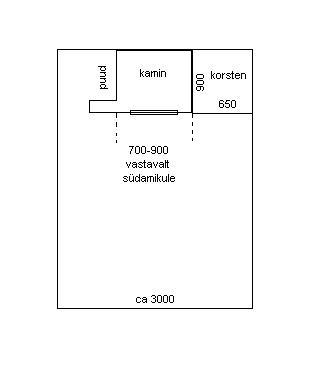 Südamik ja klaasuks; korpus kipsist (võib pakkuda ka soojust salvestavaid materjale). Välisilme nagu lisatud pildil. Kivi fassaadile siiski mitte või minimaalselt, ilmselt jääb kalliks.