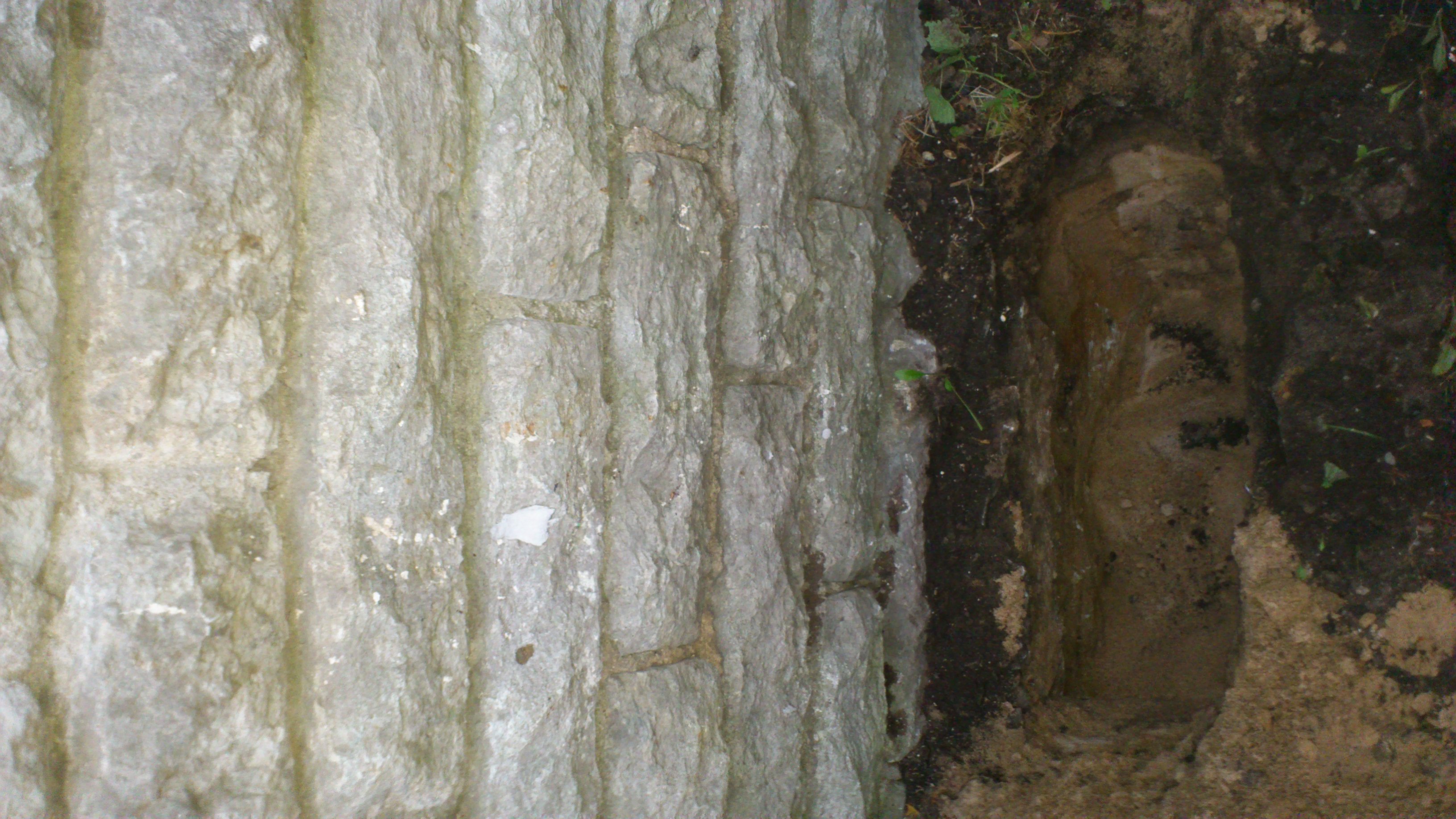Vt ka videot, seal on näha paekivisokkel, sarnane sein vajab ka pinnases tasandamist. Pääseb ligi väikese bobcatiga. Pinnas - nõmmele omane liivane.