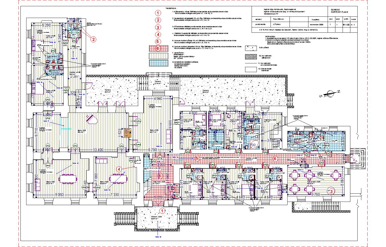Vee, kütte ja kanalisatsioonitööd projektil vasakusse tiiba jäävatele tubadele 32,11 ja 34,32 m2 (WC vesi põrandaküte), saalid 108, 59, 53 ja 53 m2, trepihalli 37 m2 ning koridori 26 m2 (vesi põrandaküte). Ühendused tuuakse keldrist ja trassid viiakse teise korruse põrandapinnani. Pakkuda ainult tööraha. Hind koos radiaatorite ühendamisega, mis teostatakse peale siseviimistlust. WC ja santehnika ühendus valmidus. Põrandad ja vahelaed on betoon.