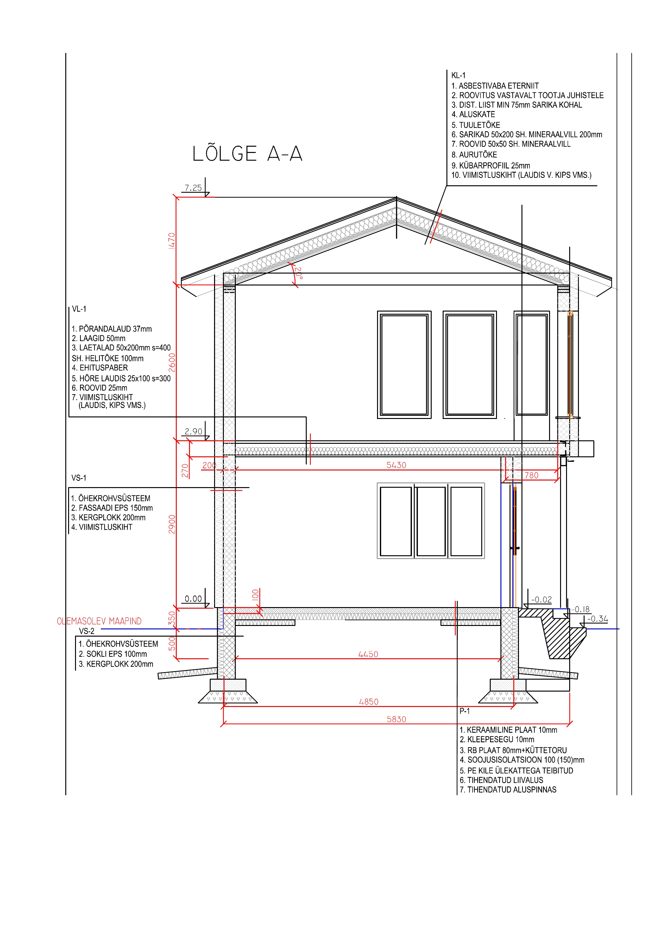näha täpsemalt vundamendi plaanilt ning vaatelt)