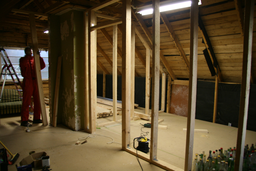 * I korrus soojustada seest (puitkarkassi vahed 150mm + kipsikarkass 100mm) Isover KL 33 villaga. Puitkarkassi külge paigaldada sisse distantsliistuga kivifassaadi poole tuuletõkkeplaat. Paigaldada aurutõkke kile ning seintele 1x ja lagedele 2x kipsplaat.