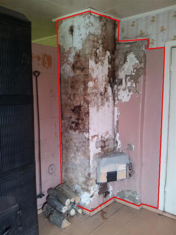 Vanamaja korstnajala krohvimine (lisatud joonisel punasega ääristatud ala).