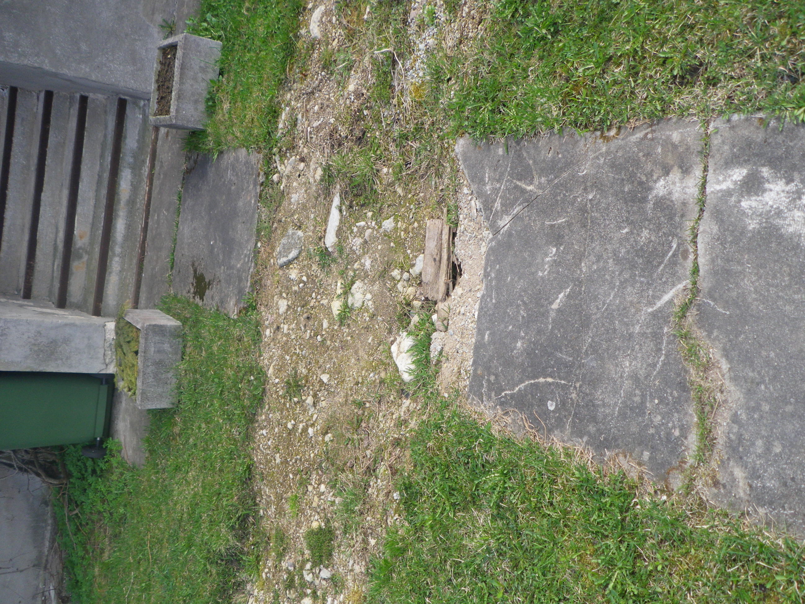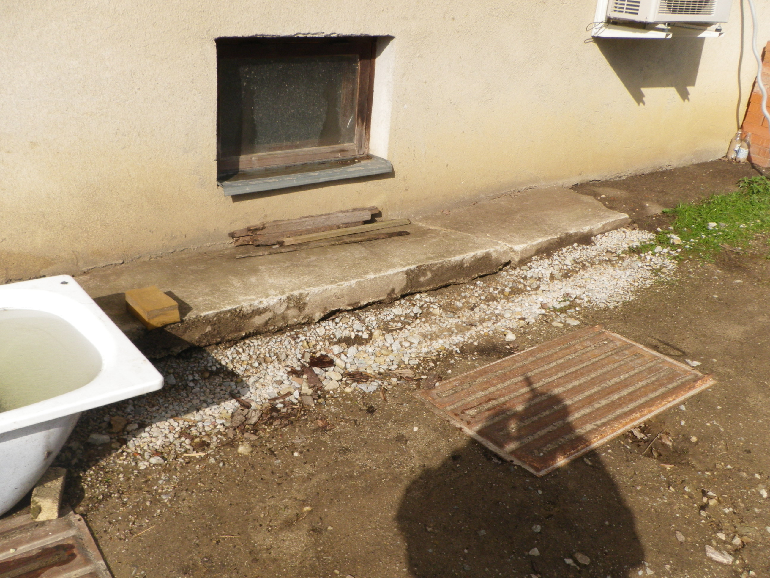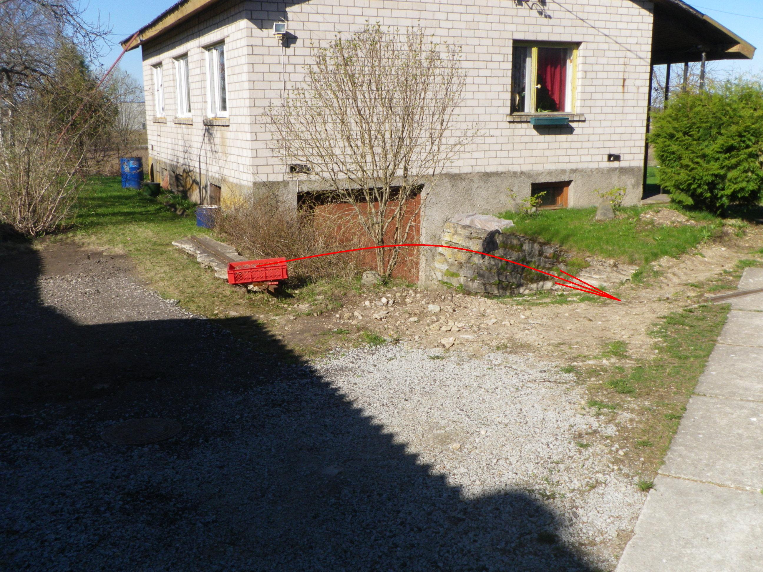 5) Paigaldada renn maasse, mille kõrgus on ~10 cm ja jätta kaldega maja poole, renn seisab lahtisena maja kõrval, maasse on vaja umbes 3 meetri ulatuses kaevata 15 cm sügavune ja 50 cm laiune kaevik ja renn sinna paigaldada, ääred tuleks ka betooniga sirgeks valada, et jääks esteetiline mulje umbes ~20 cm laiuselt kummagilt poolt. Kinnistul nr. 4