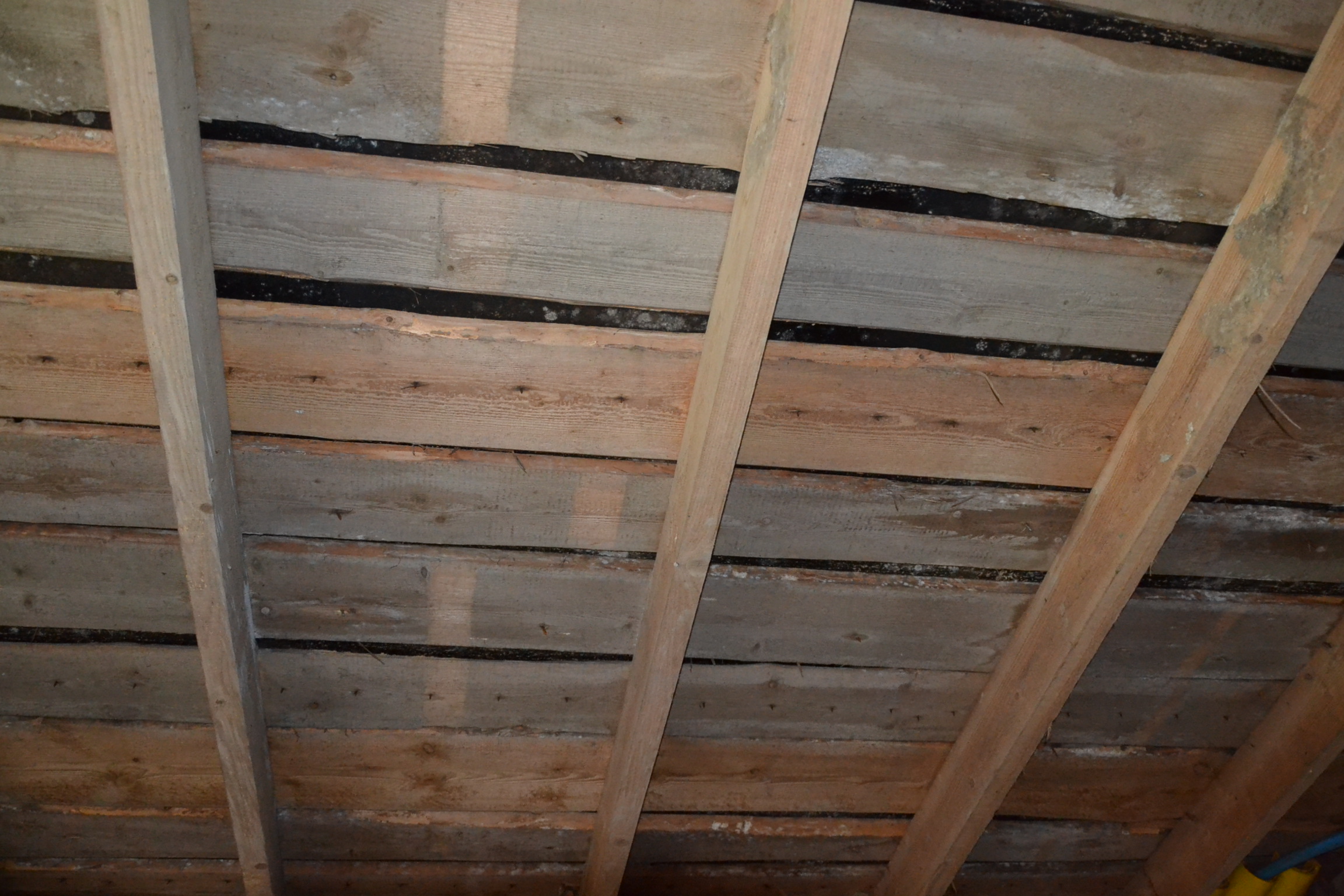 Peal on vana eterniit selle all veel tõrvapapp ja siis laudis. Lamekatus.