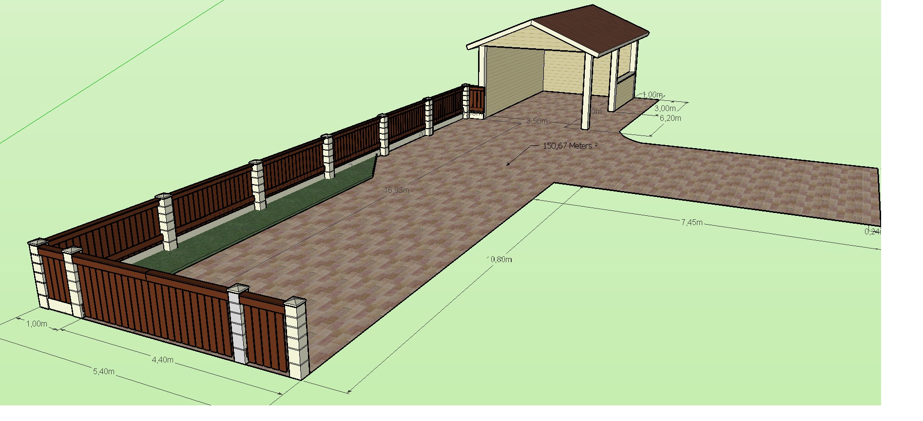 Vaja ehitada betoonpostide ning sokliga puitaed, kokku 22,85m, millest auto ning jalgvärav on 4,4m. Betoonpostid peaks olema 20 cm läbimõõduga, maapinnast 120 cm kõrged, samasugused nagu siin http://www.tara.ee/et/content/betoon-postid joonisel nr 1 näidatud. Puit peab olema hööveldatud. Vt joonist, kuidas aed paikneb.