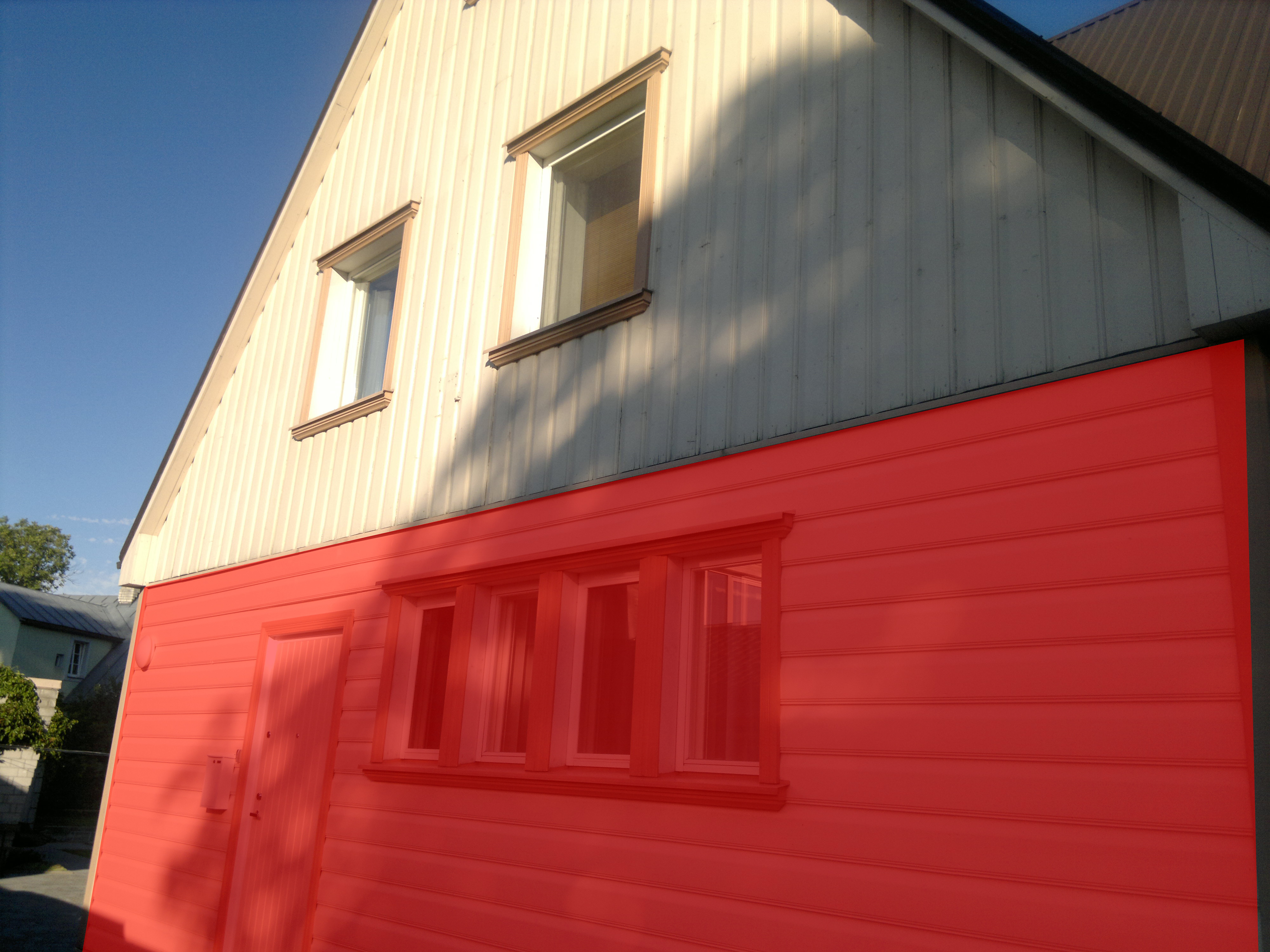 - Eelmiste remonttööde korras on väike osa majast juba värvitud, seda osa EI OLE vaja üle värvida (pildil punasega)