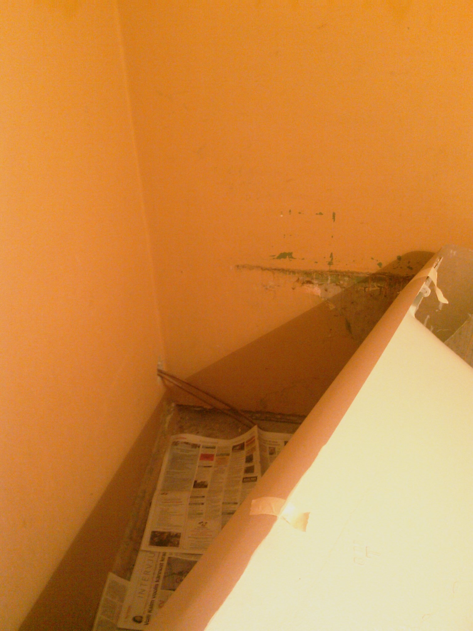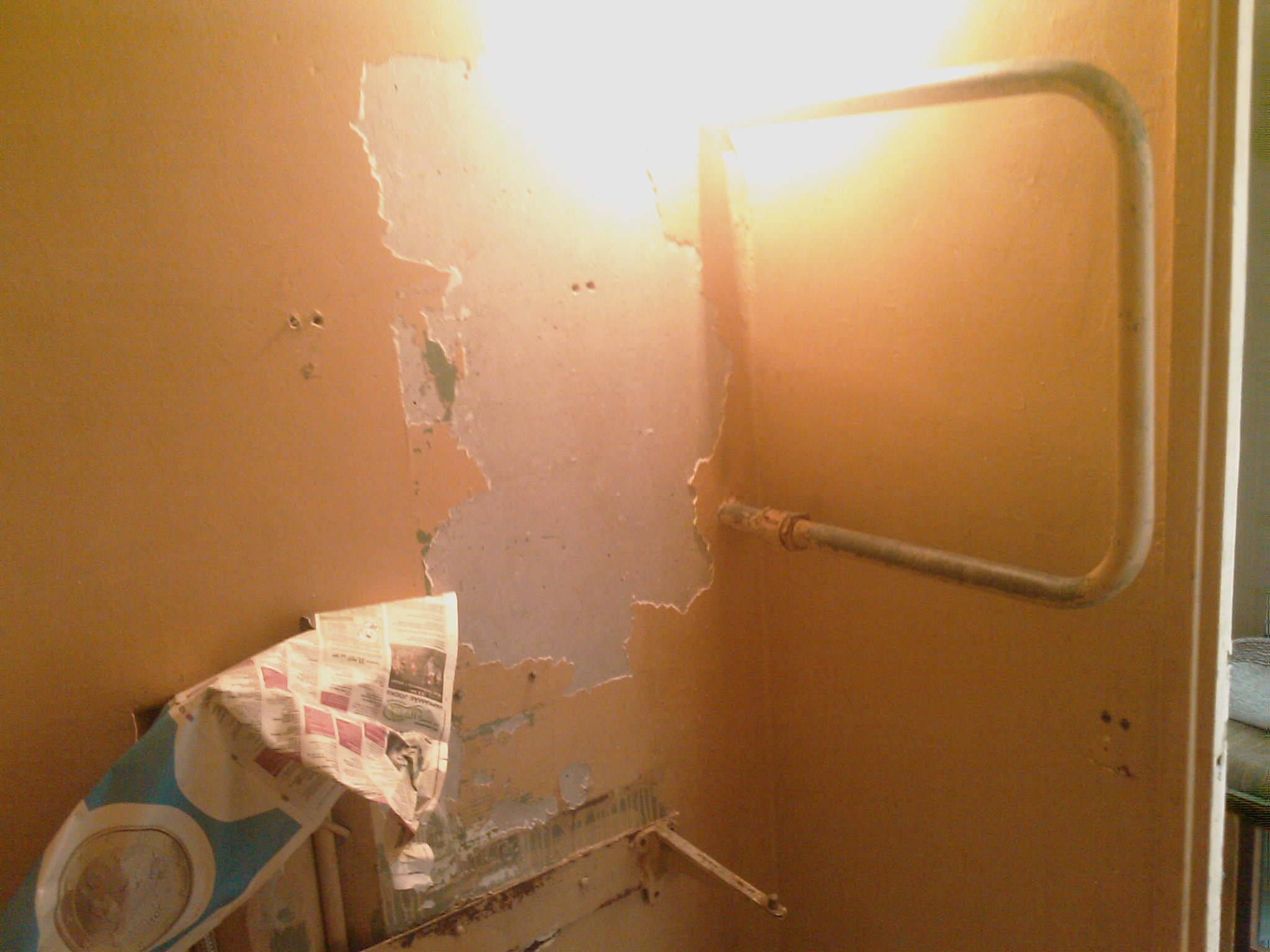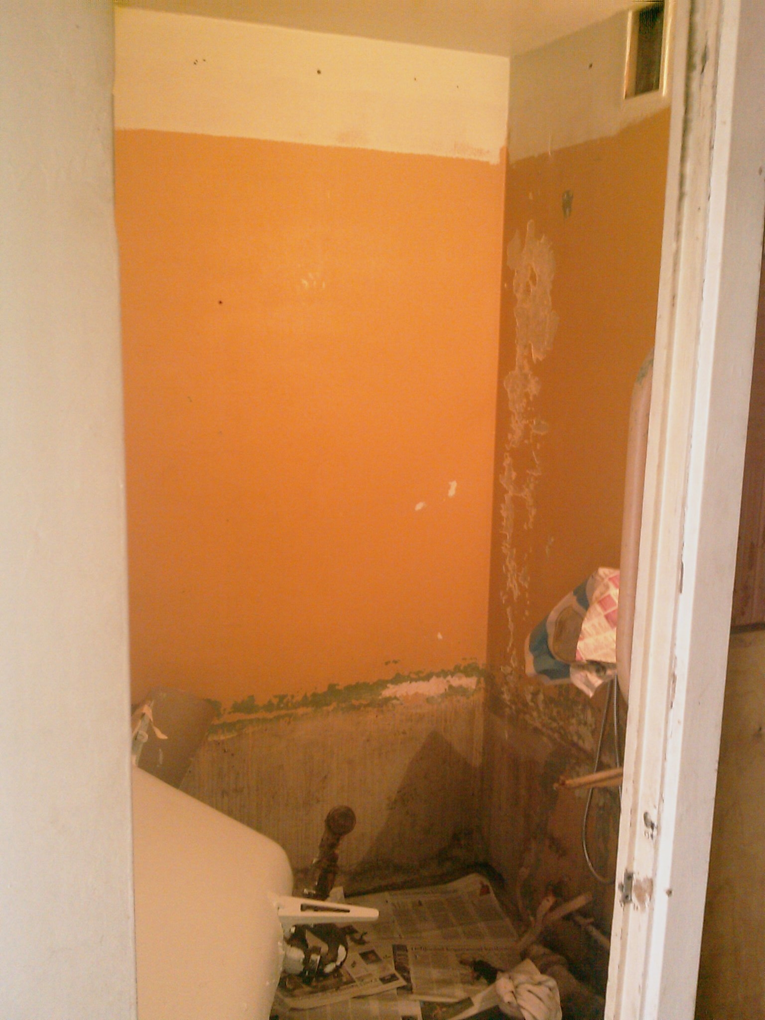 Vannitoas on seinad puhastatud ja lagi üle värvitud. Soov on plaatida seinad. Vanni otsa oleks vaja ehitada ka väike plaaditud kaldpind vee äravooluks.