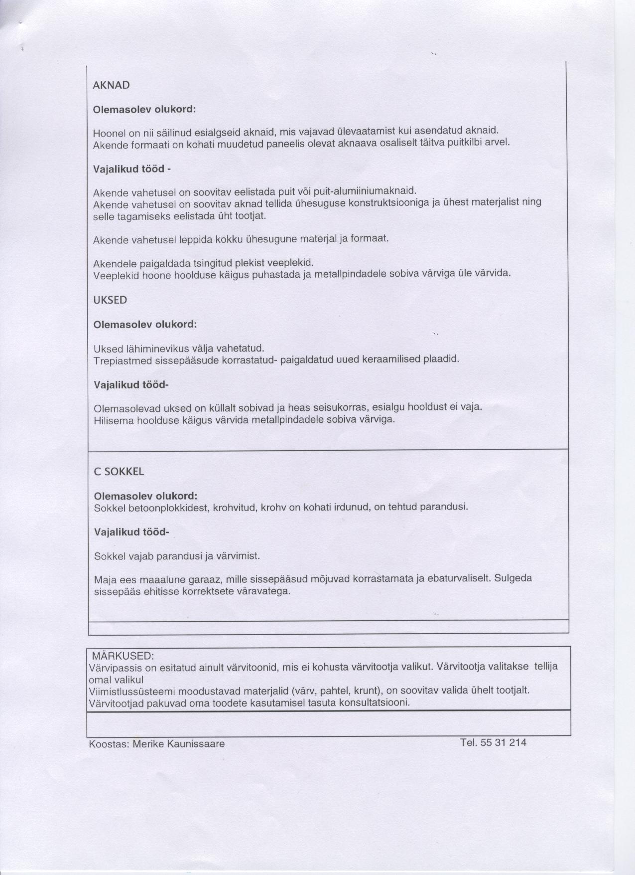 | Ehitusmaterjalid: | Töö tegija poolt |