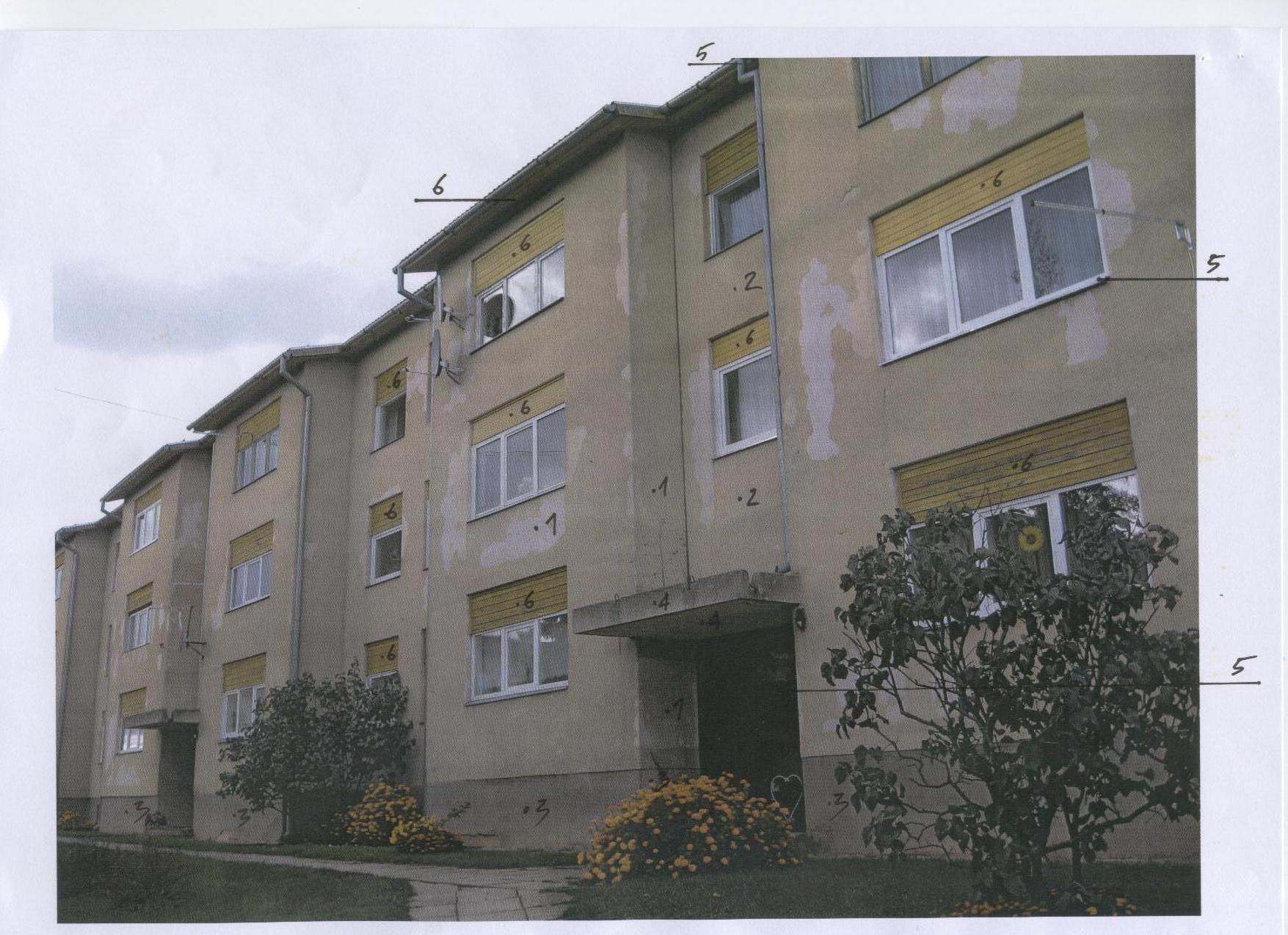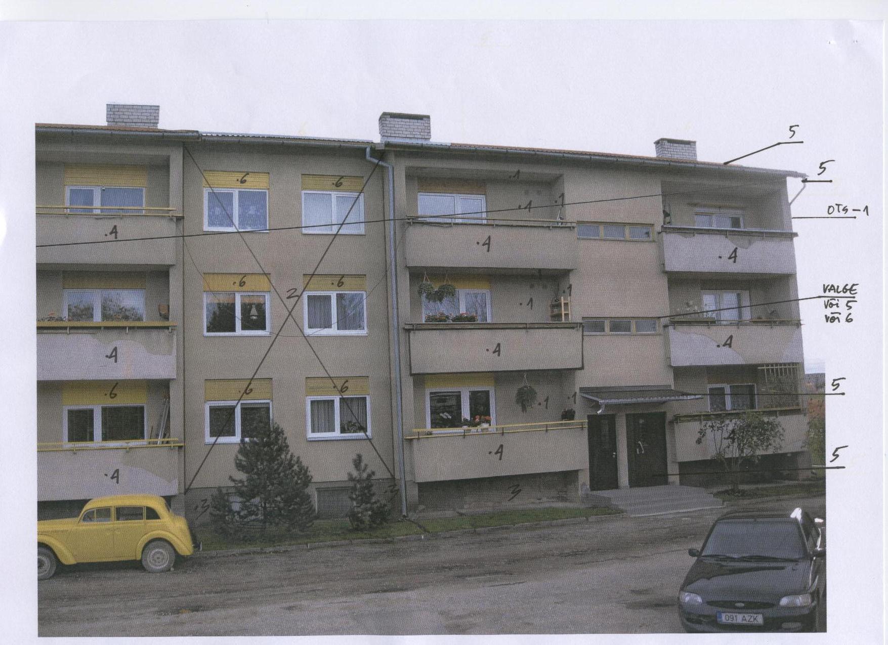 Kortermaja olemasoleva lagunenud krohvikihi täielik eemaldamine, vuukide täitmine soojapidava materjaliga ja uus krohv. Tuulekastide ja teiste fassaadi puitosade remont ja värvimine. Sokli soojustamine 100 mm EPS100 Silver või tugevama plaadiga ja krohvimine.