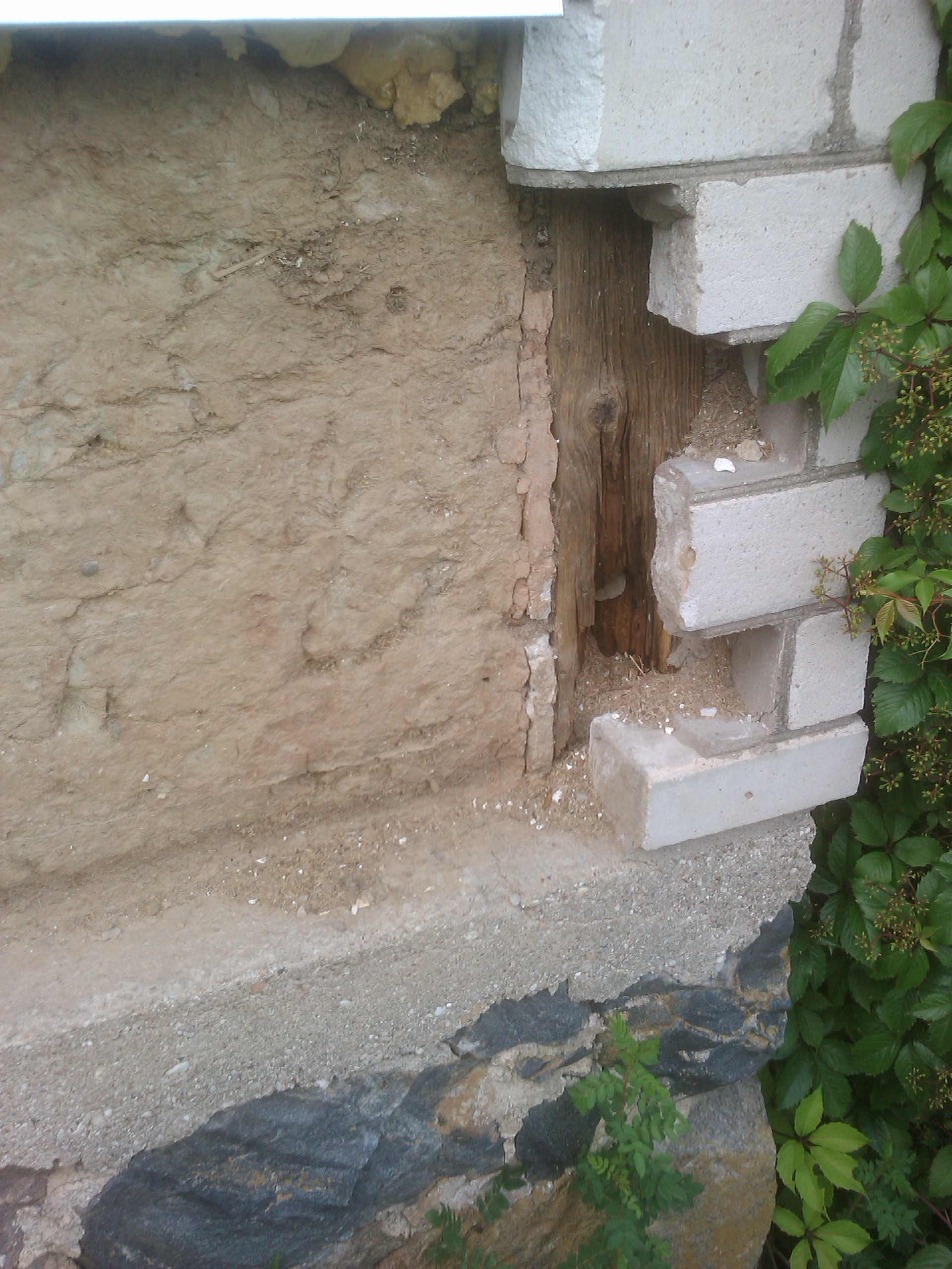 Lisaks oleks vaja välja vahetada saviplokkide vahel olev nurgatala(150x150, ots mädanenud). Vajalik eelnev toestus.