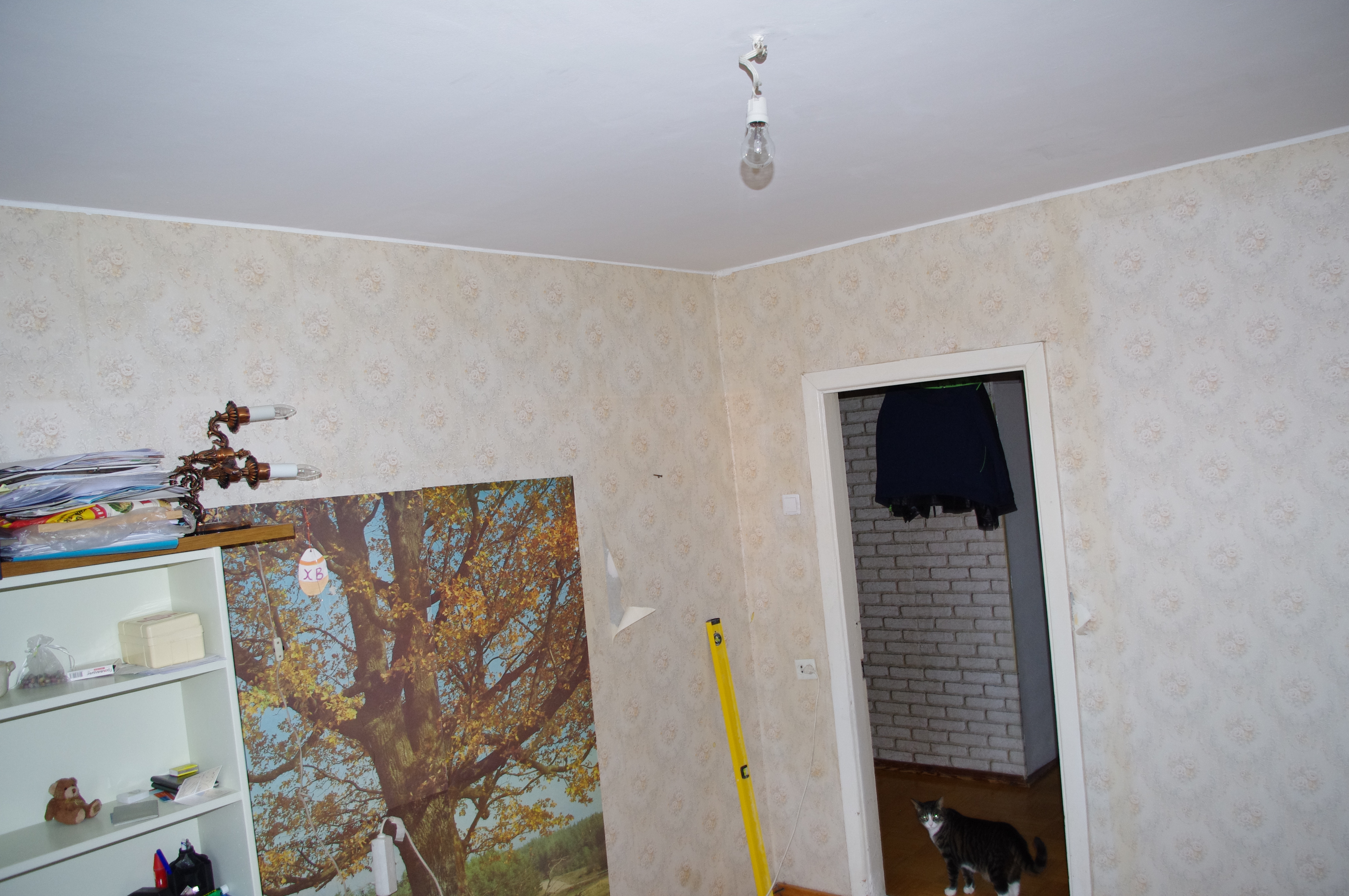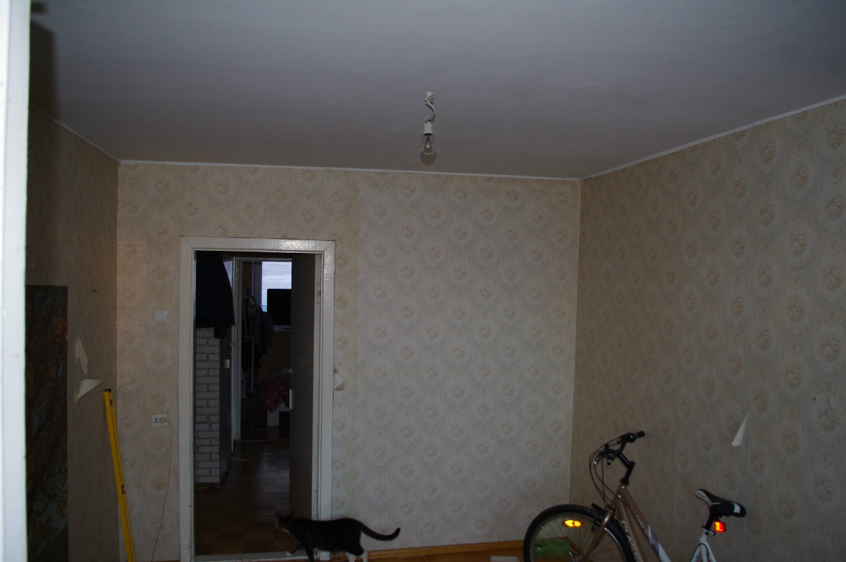 Manusena on siis toa pildid nagu see näeb praegu välja. Selle nädala jooksul paigaldatakse uued aknad, muudetakse mõnede pistikute asukohad, võtame ise vanad tapeedid maha, ja teeme toa lõpuni tühjaks.